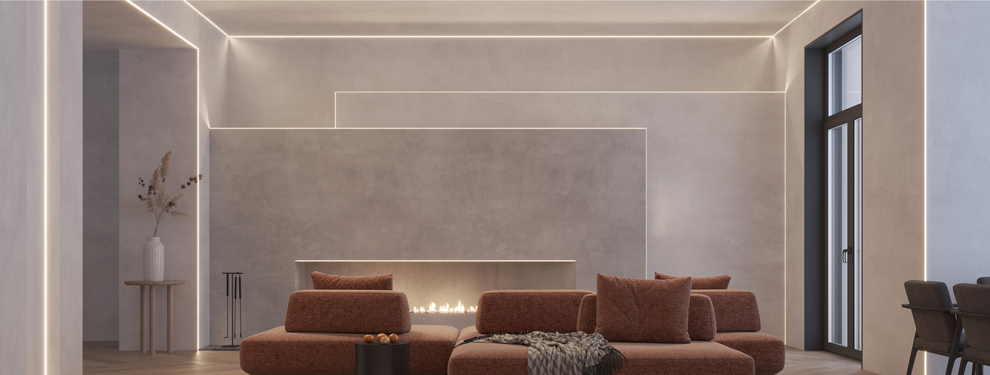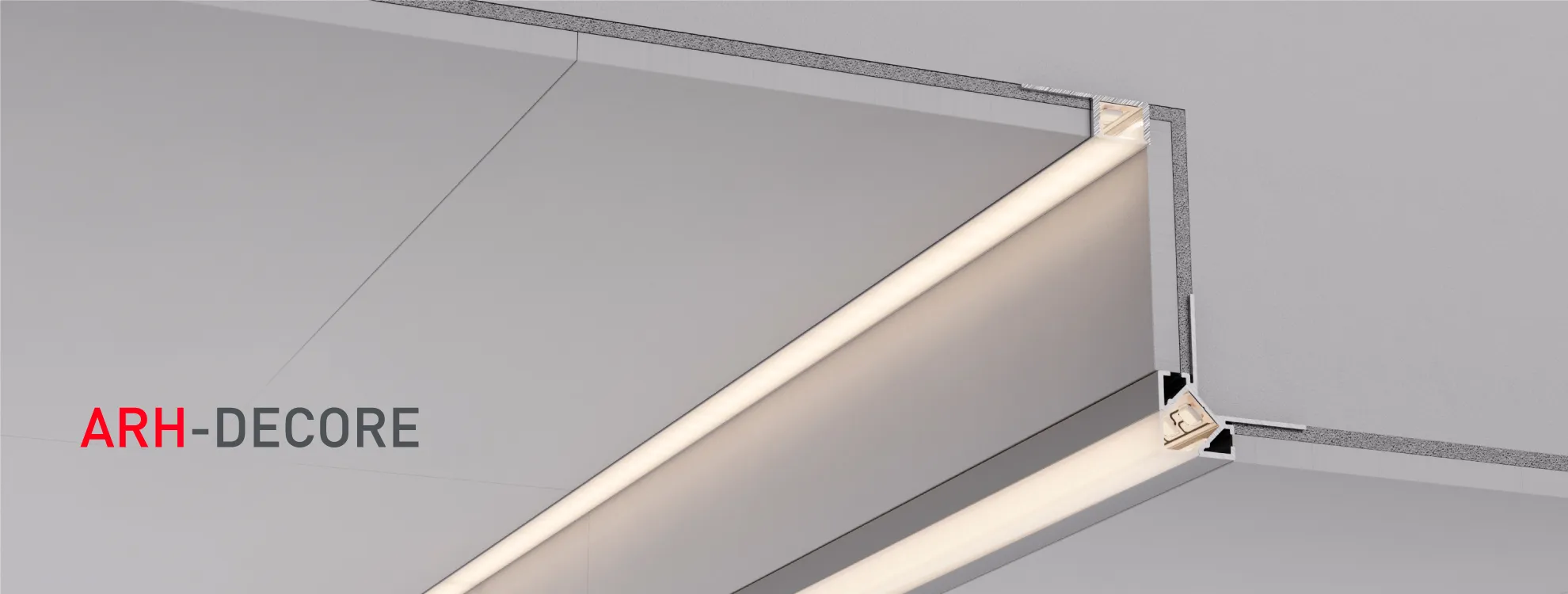 Профили ARH применяются под строительную отделку или плитку и предназначены для создания контурной подсветки и зонирования пространства. Серия также включает в себя профили с утопленным экраном, благодаря чему создается максимально комфортная подсветка.