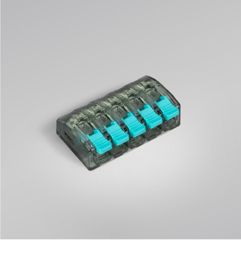 Фиксация Благодаря рычажковому механизму зачищенные провода легко вставляются и фиксируются в клемме.