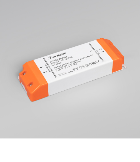 Блоки питания ARV-SP в легком пластиковом корпусе предназначены для преобразования переменного напряжения электрической сети в постоянное стабилизированное напряжение. Используются для питания светодиодной ленты и другого светодиодного оборудования.