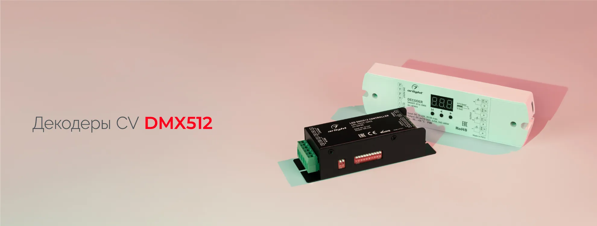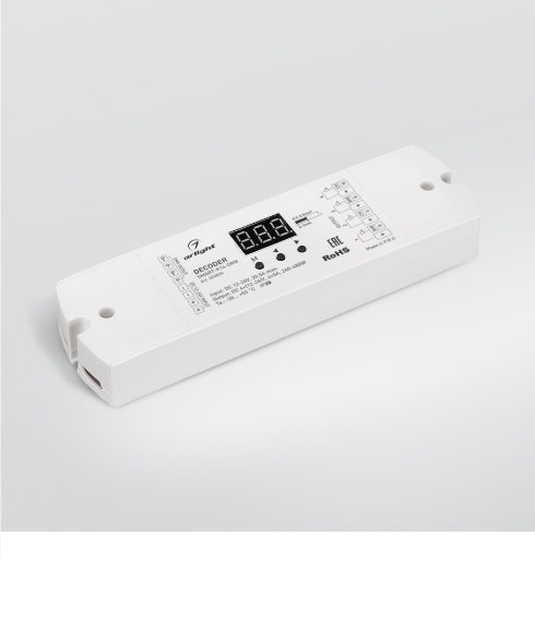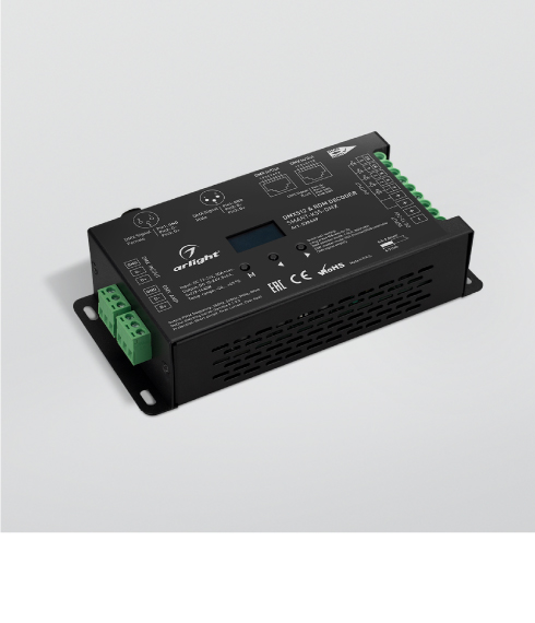 Декодеры цифрового протокола DMX512 предназначены для управления многоцветными светодиодными лентами RGBW, монохромными лентами и другими светодиодными источниками света с питанием постоянным напряжением 12–48 В, которые поддерживают управление ШИМ (PWM).