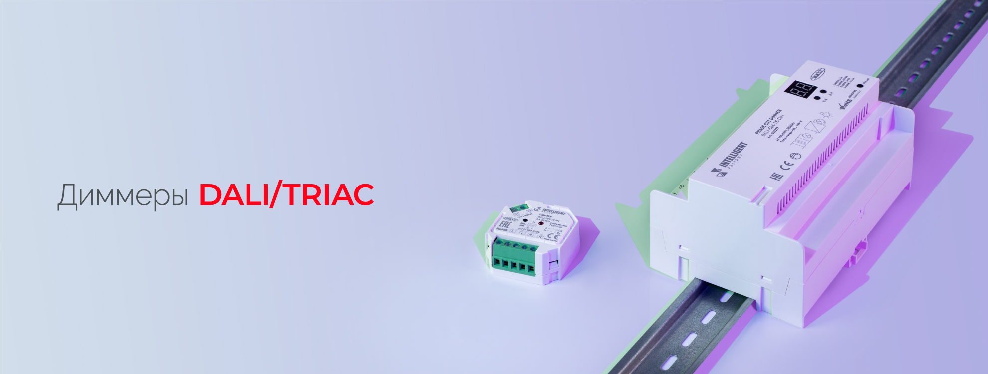 Диммеры, работающие по стандарту DALI, предназначены для управления источниками света с напряжением питания AC 230 В, в том числе диммируемыми светодиодными лампами и светильниками за счет отсечки переднего либо заднего фронта фазы сетевого напряжения методом TRIAC.