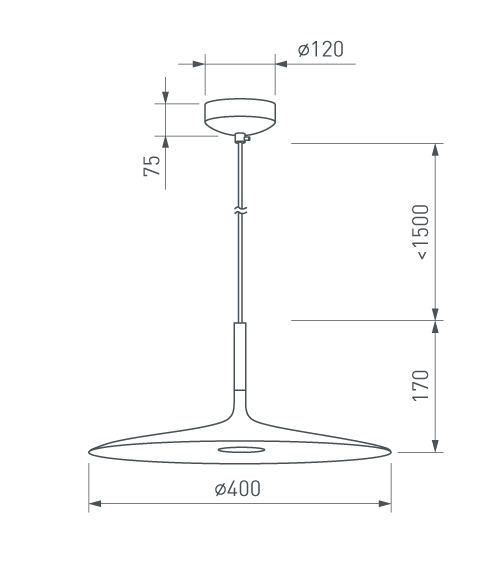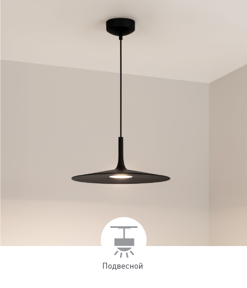 Черные и белые корпуса диаметром 250, 400 мм с регулируемым подвесом длиной 1500 мм. Мощность 8 и 13 Вт.