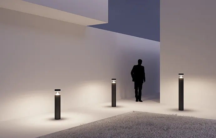 Стильные светильники подчеркивают красоту ландшафта в темное время суток и превращают участок в настоящее произведение искусства. Благодаря широкому углу излучения в 300° и направленному вниз свечению LANDMARK не слепит глаза, создает комфортное освещение для пешеходных дорожек или придомовых территорий, а также организует яркую подсветку ландшафтных элементов.