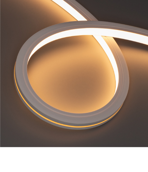 Экструдированный корпус обеспечивает высокую степень пылевлагозащиты (IP67), что позволяет устанавливать гибкий неон на улице под открытым небом.