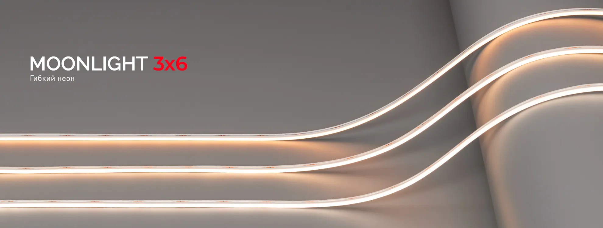 Миниатюрный гибкий неон MOONLIGHT с сечением всего 3×6 мм — отличное решение для изящной подсветки мебели, в том числе и во влажных помещениях. Для удобства и простоты монтажа в серии представлены модели с Т-образным фланцем.