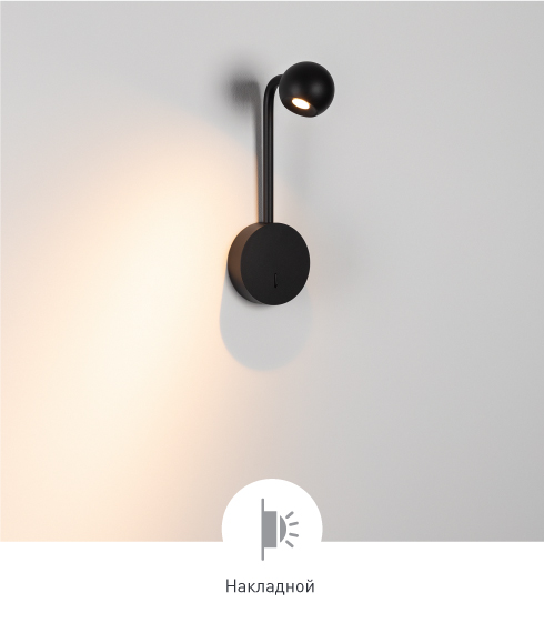 Поворотный, позволяет легко менять направление света. Два цвета: черный и белый.
