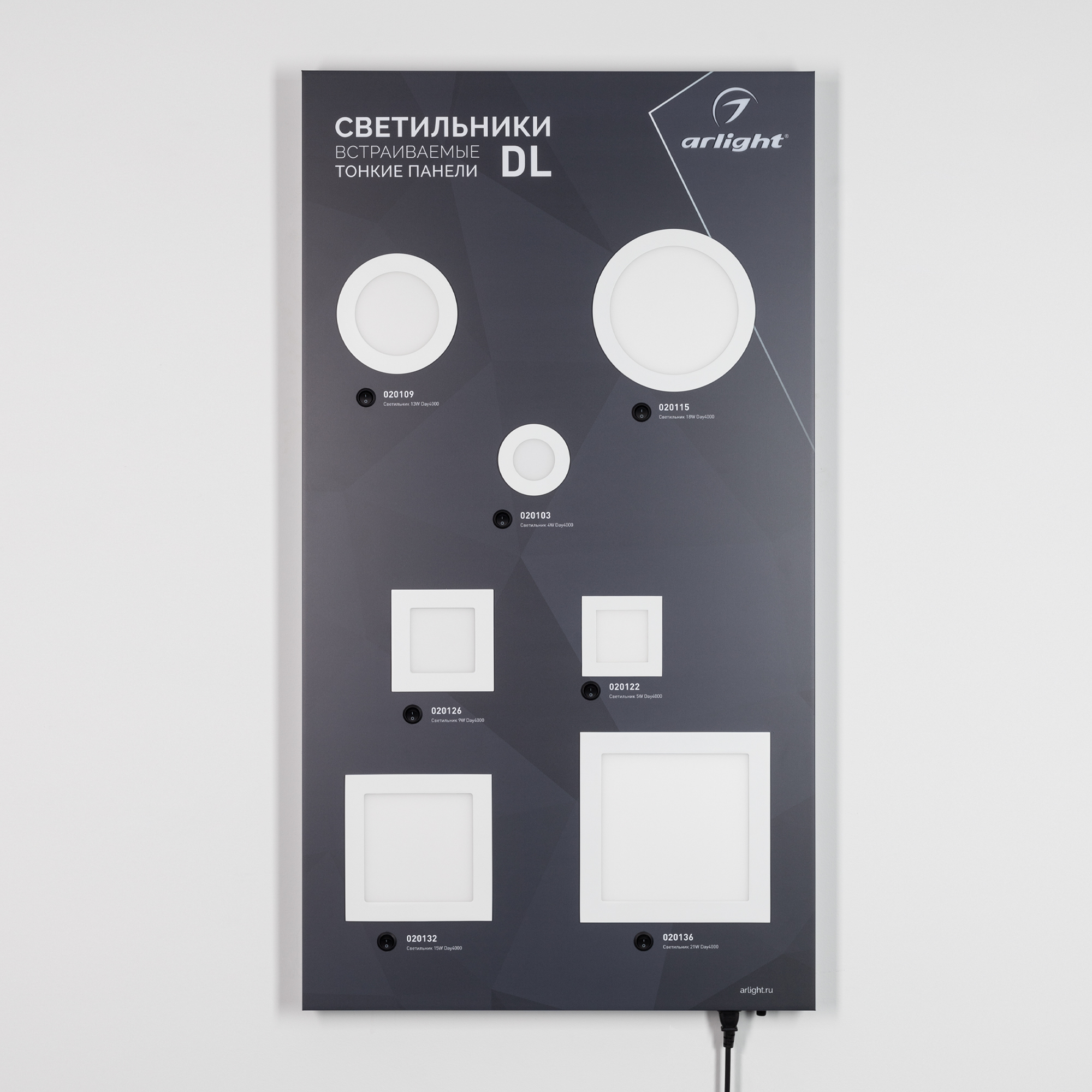 Стенд Светильники встраиваемые Тонкие панели (Arlight, Пластик)