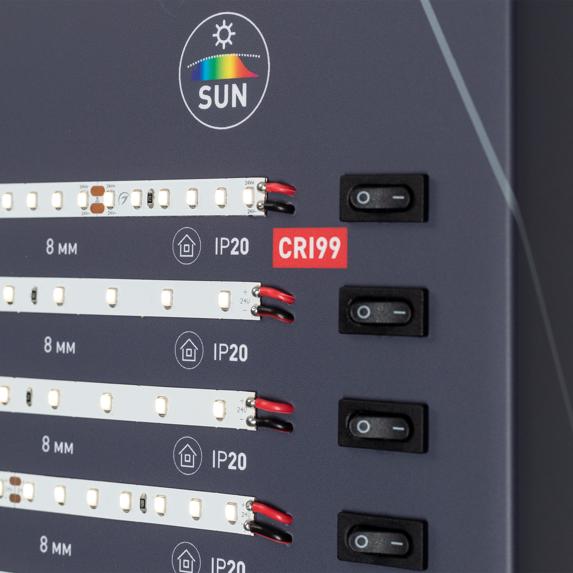 Стенд светодиодные ленты Универсальные 12/24В, 36 моделей (ряды #1-#36). Материал - алюкобонд 3 мм, пленка, печать. Габаритные размеры (Ширина Х Высота Х Глубина), 600х1760х60 мм. Питание 230 В. Мощность 150 Вт.
