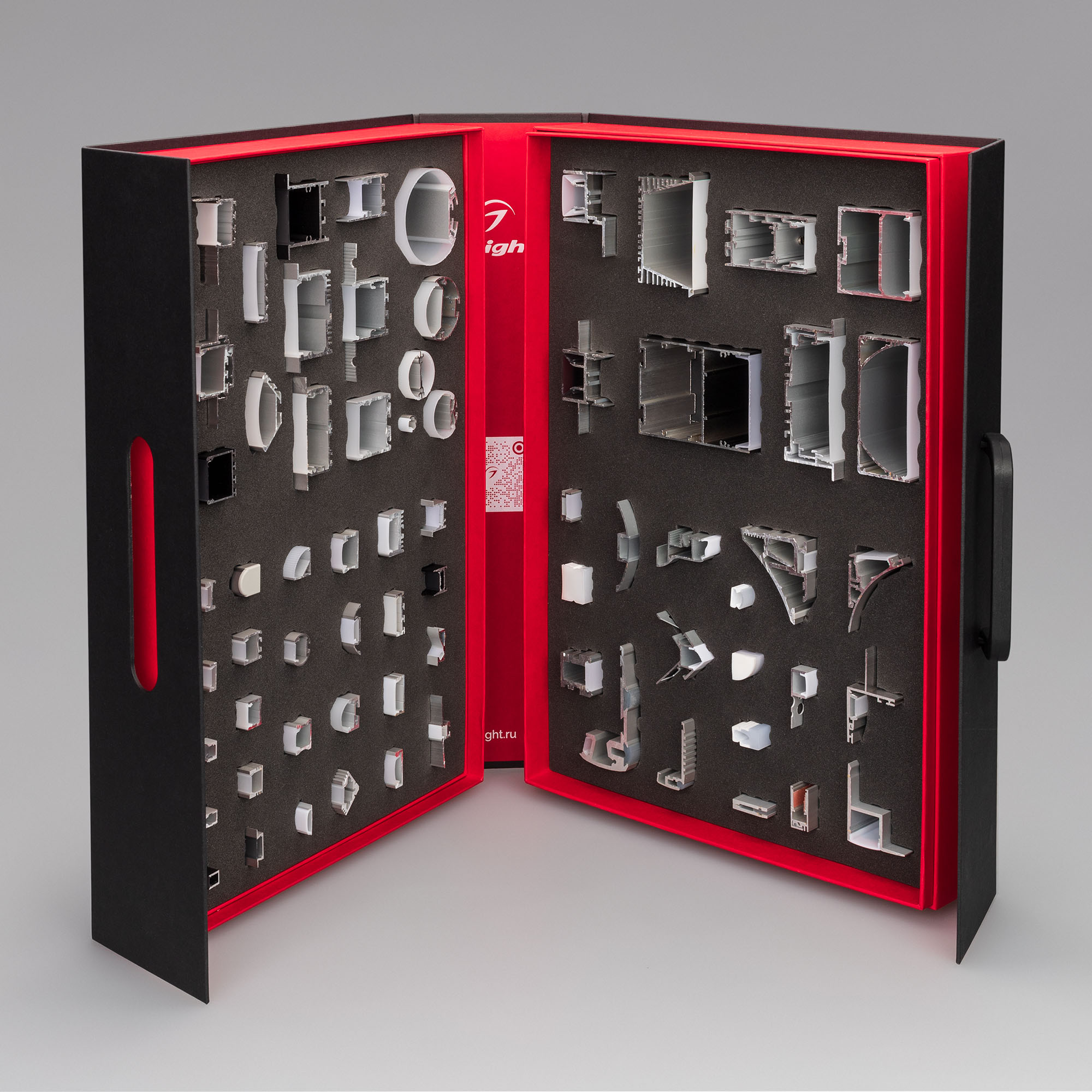 Демокейс содержит более 70 образцов профиля для основного и декоративного освещения, а также специализированный профиль. Предаставлены модели для накладного, встраиваемого и подвесного монтажа. В комплекте буклет с обзором представленных моделей.