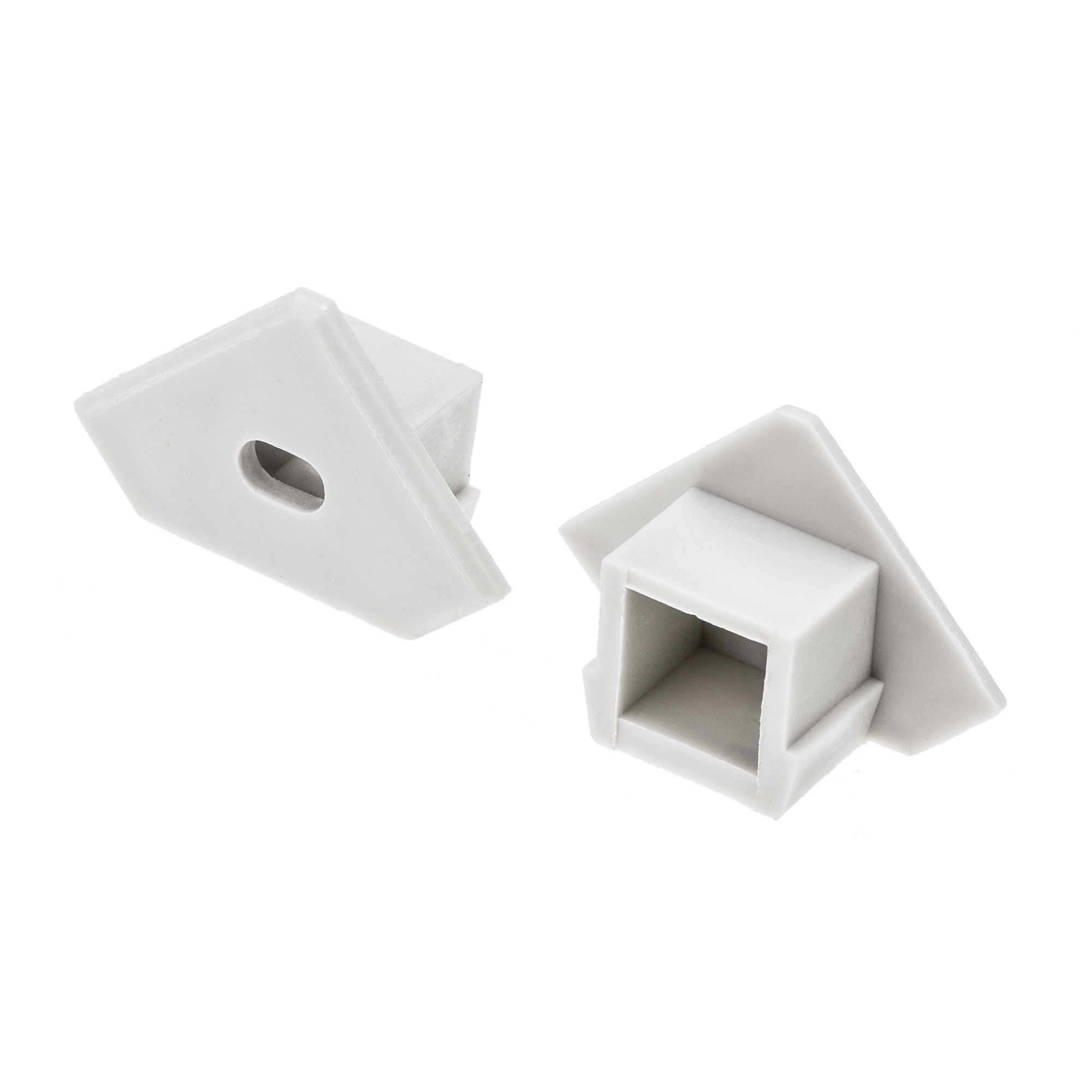 Серая заглушка с отверстием для углового профиля PDS45-T. Придает законченный вид светильнику, а также защищает светодиодную ленту от внешних факторов (грязи, пыли и прочего). Отверстие в заглушке позволяет вывести кабель питания светодиодной ленты.