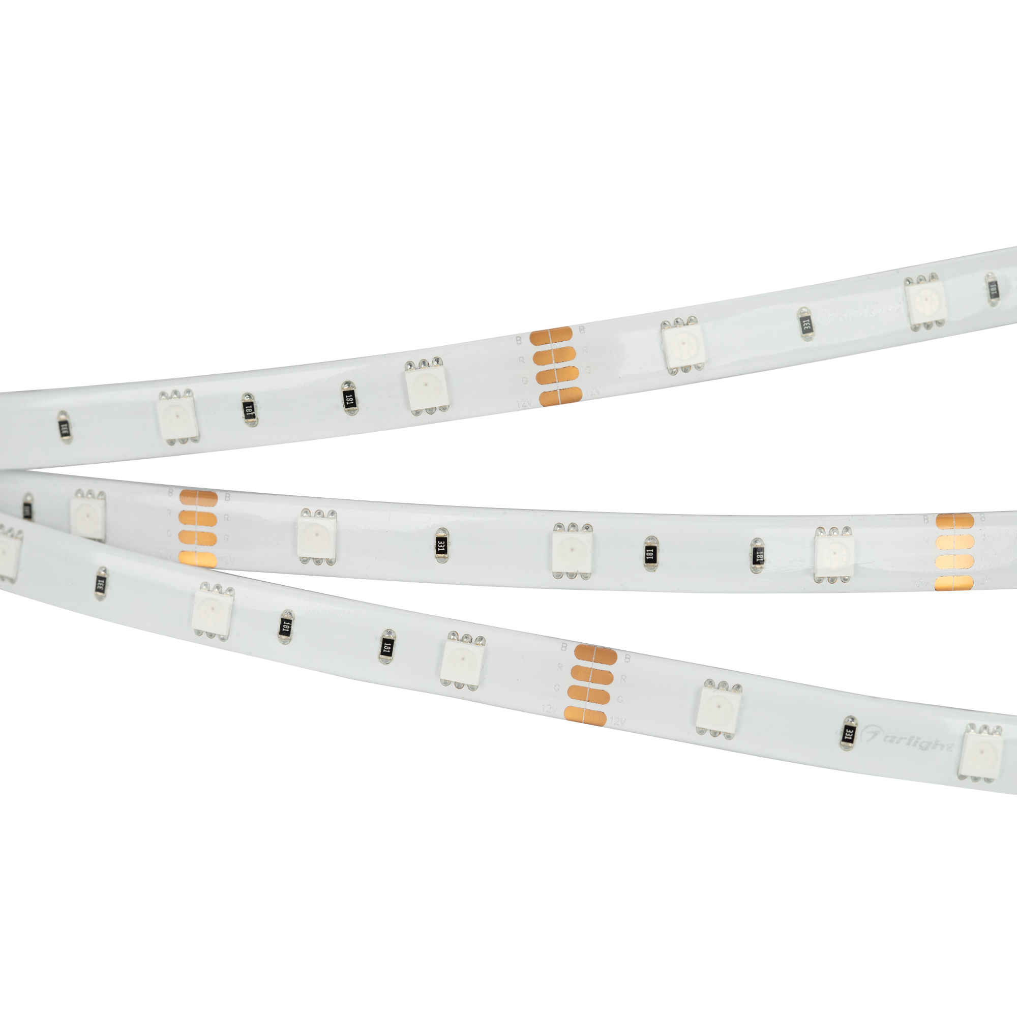 Мультицветная герметичная светодиодная лента RTW серии B30, IP65 (SE - силиконовый верхний слой). Светодиоды SMD 5060, 30 шт/м, белая плата шириной 10 мм, скотч 3M. Цвет RGB. Питание 12 В, мощность 7.2 Вт/м (36 Вт на 5 м), угол 120°. Размеры 5000x10x2.7 мм. Мин. отрезок 100 мм, 3 светодиода. Цена за 1 м.