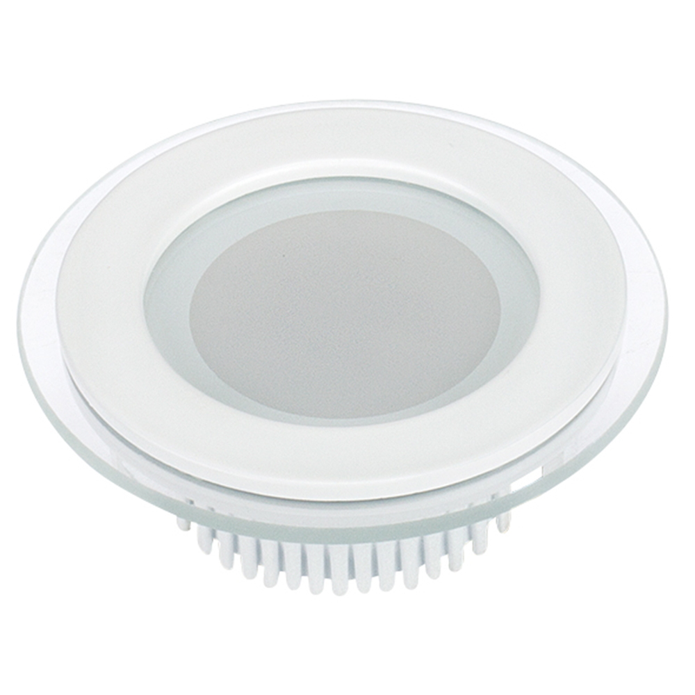 Стеклянная круглая панель 6Вт / ДНЕВНОЙ 4000K / 430лм / 120°. Размер Ф96x45мм (в отверстие Ф72 мм). Корпус белый. Питание от сети 230VAC, мощность 6Вт, драйвер в комлекте 300mA 15-25V. Диапазон рабочих температур -10°..+40°C. Для помещений.