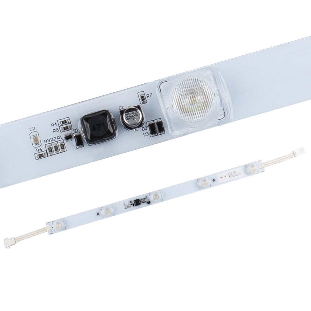 Герметичный светодиодный модуль-линейка IP63, БЕЛЫЙ 6000–7000 К, напряжение 24 В, мощность 15 Вт, св. поток 1050 лм, 5 светодиодов OSRAM, угол 15/45°. Рекомендуемая глубина установки 160–300 мм. Размер 495×27.5×15.6 мм. Гарантия 5 лет.