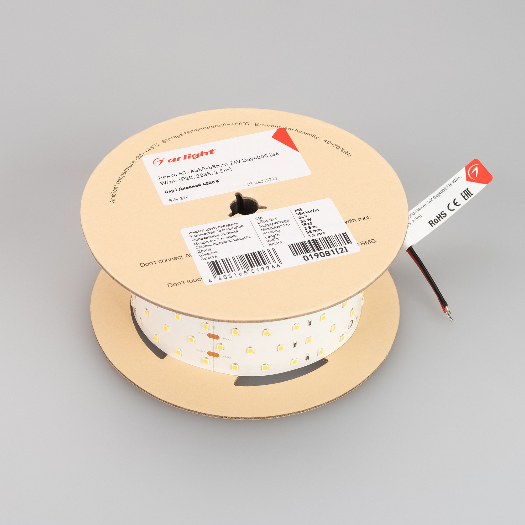 Светодиодная лента RT-A350-58mm 24V Day4000 (36 W/m, IP20, 2835, 2.5m) (Arlight, Открытый)
