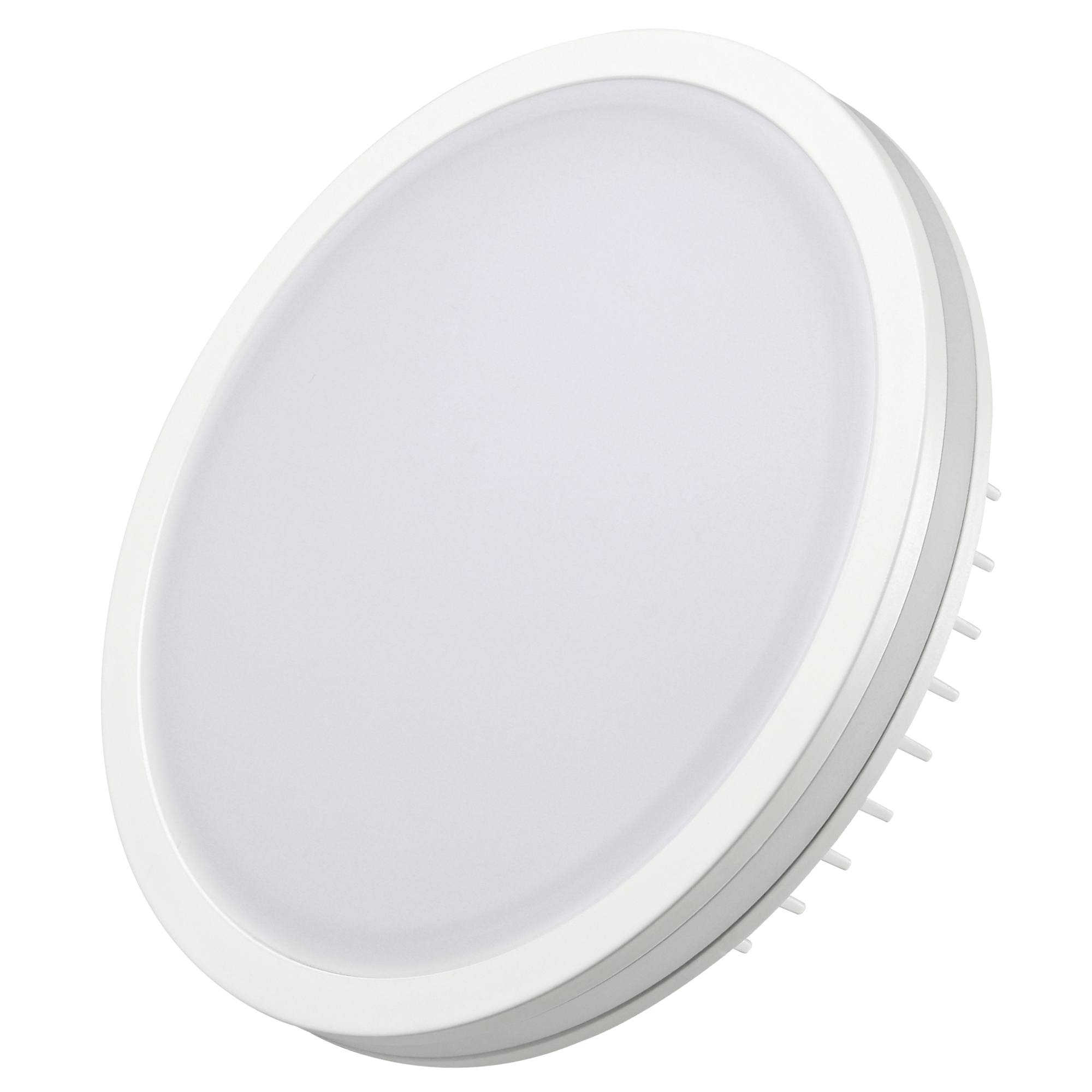 Встраиваемый круглый светодиодный светильник LTD-135SOL-20W Warm White мощностью 20 Вт с теплым белым цветом свечения (3000 К) и светящимся контуром для создания основного и декоративного освещения. Оригинальный дизайн корпуса с декоративной вставкой из поликарбоната дополнит любой интерьер. Тонкий корпус светильника со степенью пылевлагозащиты IP44 и компактный драйвер, поставляемый в комплекте, позволяют встраивать светильник в натяжные и гипсокартонные потолки. У светильника 2 типа освещения: боковое с углом излучения 120° и основное с углом излучения 180°. Индекс цветопередачи CRI>80, световой поток 1400–1600 лм и матовый рассеиватель обеспечивают мягкий равномерный свет. Светильник легко устанавливается с помощью пружин в монтажное отверстие диаметром 125 мм и минимальной высотой 40 мм. Светильник с эффектным светящимся контуром станет оригинальным элементом современного интерьера и обеспечит основное и декоративное освещение в любых типах помещений.