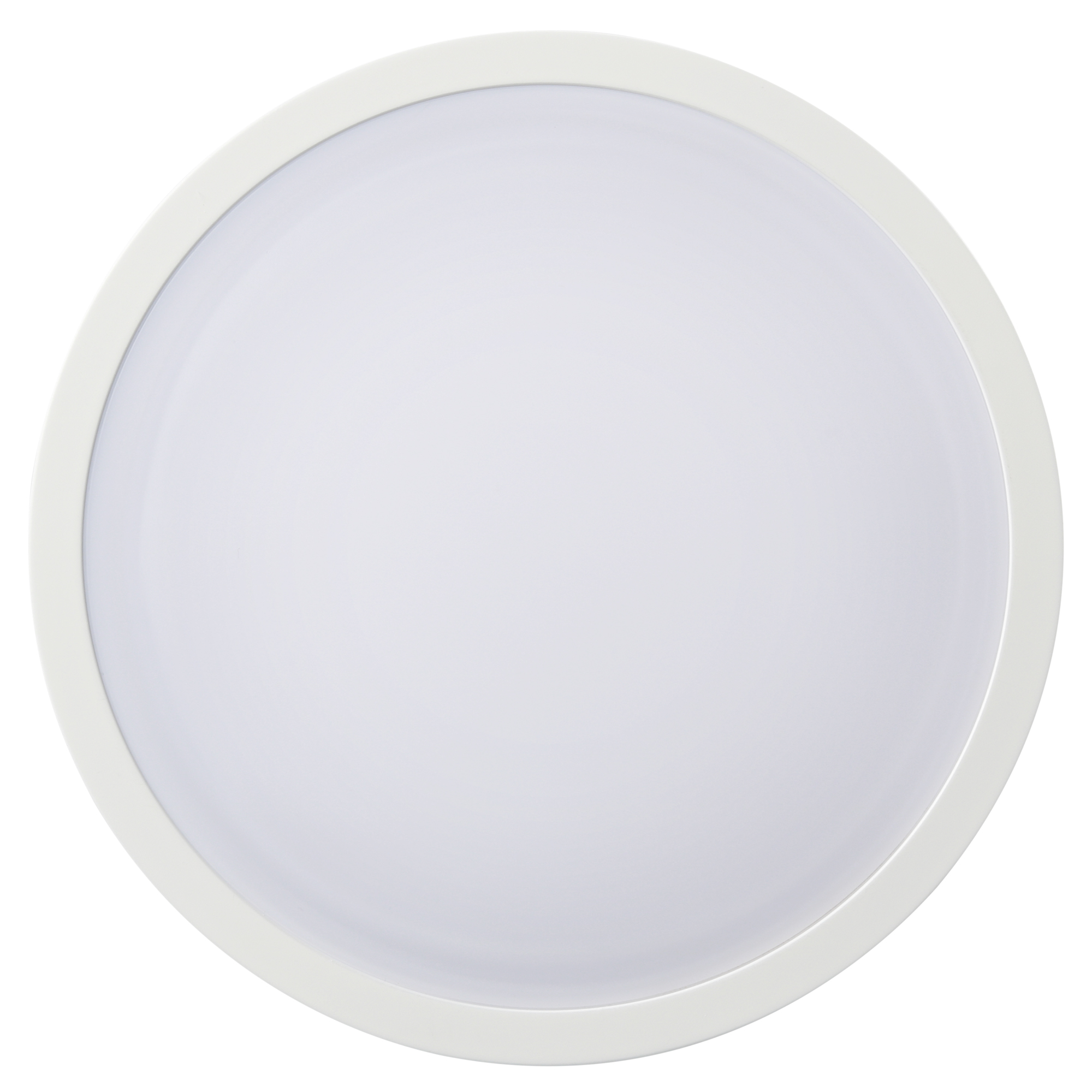 Круглый светильник с контурным свечением. Корпус IP44 белый + вставка поликарбонат PC. Цвет ТЕПЛЫЙ БЕЛЫЙ 3000К, св.поток 1400-1600 лм, угол 120°+180°. Питание 180-240VAC, 20Вт. Драйвер в комплекте 500mA 28-42V. Размеры 135х40 мм, установка в отв.125 мм, высота мин.40 мм.