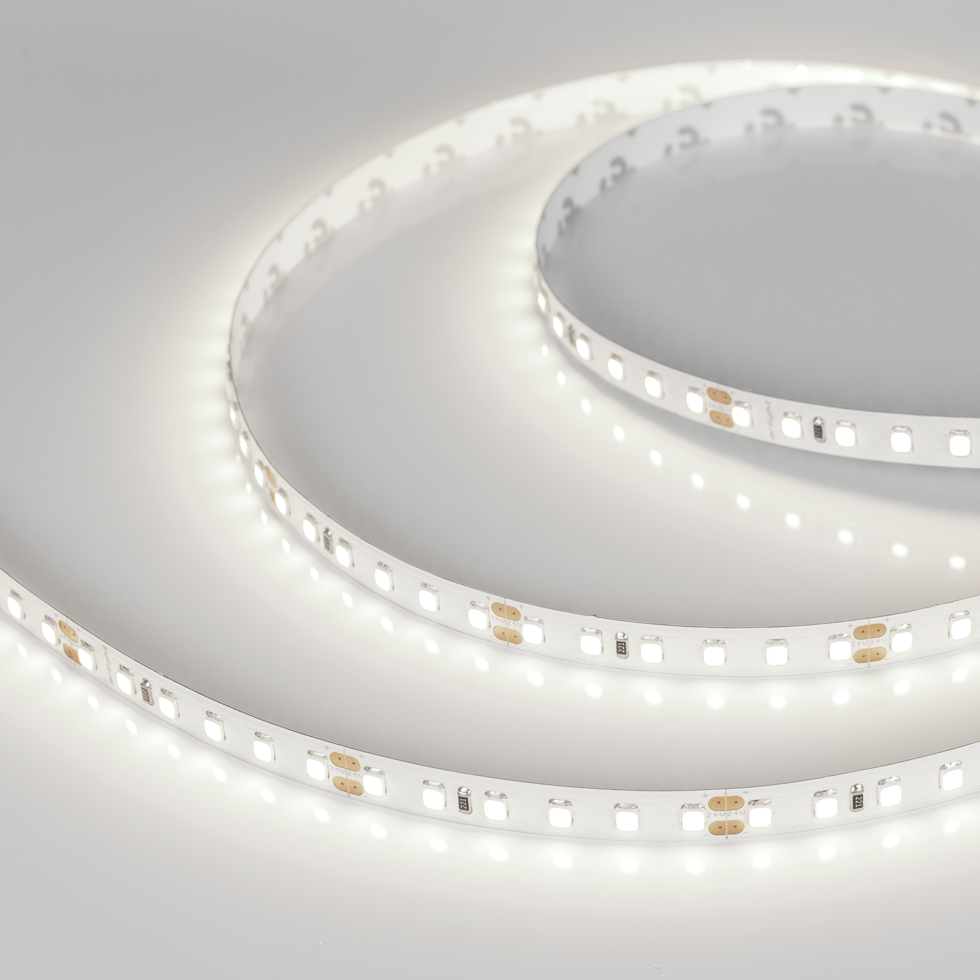 Гибкая лента CRI98, светодиоды smd 2835, 120 шт/м (600шт на 5м), белая плата 8 мм, скотч 3М. Цвет БЕЛЫЙ ДНЕВНОЙ 4800-5200K. Питание 24V, мощность 14.4 Вт/м (72 Вт на 5м), угол 120°, высокая цветопередача CRI>95. Размеры 5000х8x1.5мм. Мин.отрезок 50мм, 6 светодиодов. Цена за 1м.
