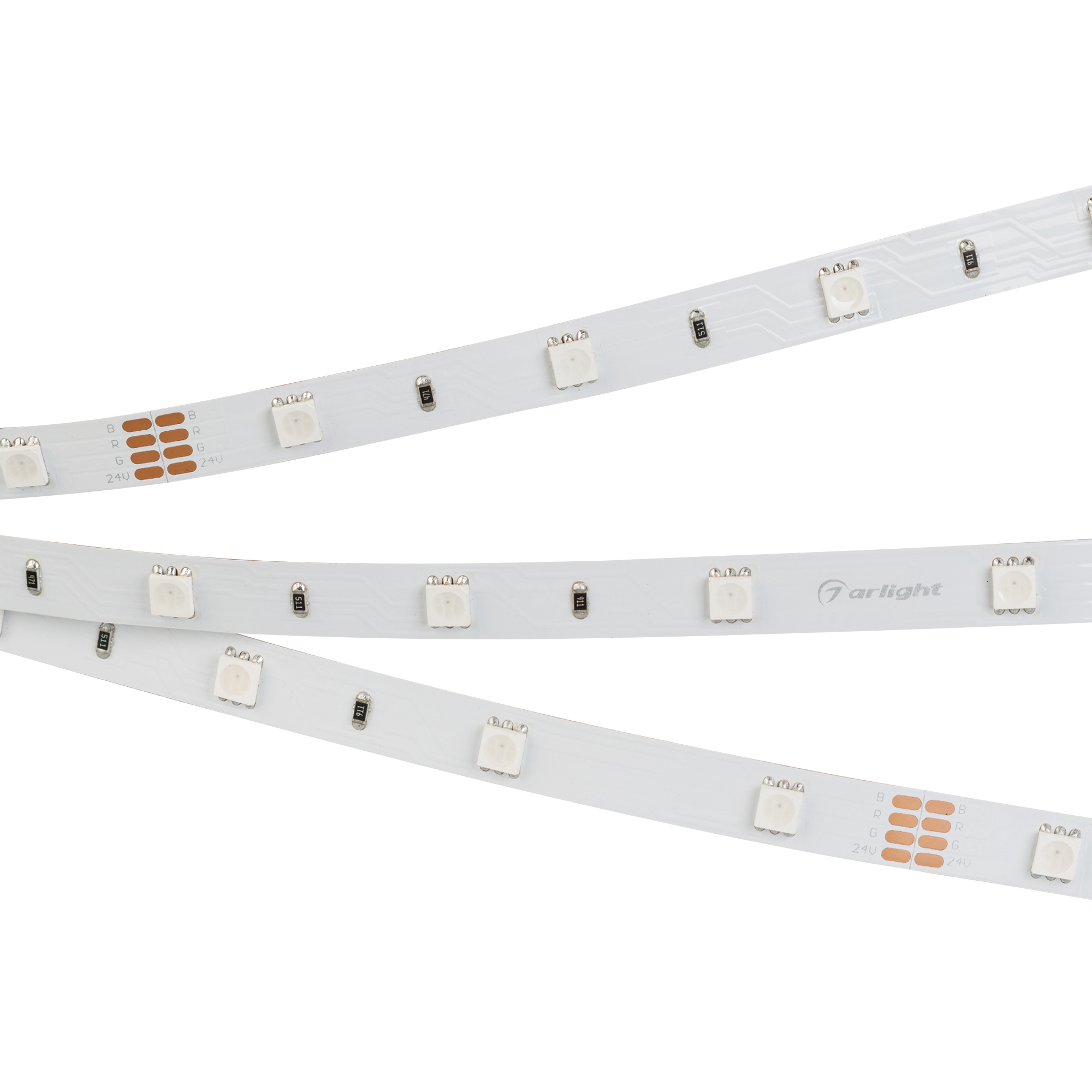 Мультицветная светодиодная лента RT серии B30 шириной 10 мм, мощностью 7.2 Вт/м. Цвет свечения RGB. Напряжение питания 24 В. Светодиоды SMD 5060, 30 шт/м. Минимальный отрезок 166.67 мм (5 светодиодов). Трехканальная лента с 4 проводами для подключения, управляется RGB-контроллером. Применяется для оформления декоративной подсветки рекламных конструкций и витрин, мультицветной подсветки ниш, создания цветных световых линий с изменяемым цветом свечения.