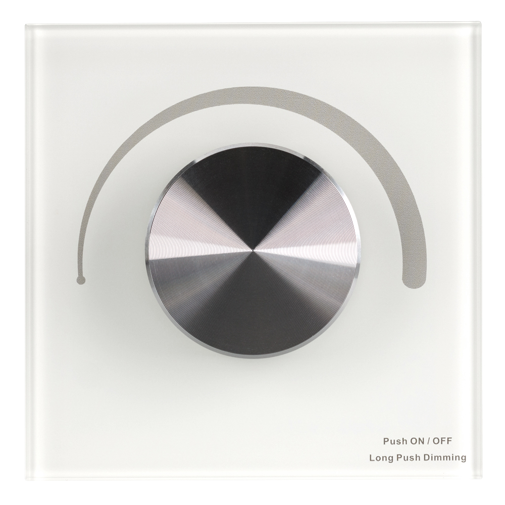 Встраиваемая роторная панель белого цвета из стекла, с защитой от появления мелких царапин. Предназначена для управления одноцветными источниками света (ШИМ) с помощью роторного вращателя. Основные выполняемые функции: включение/выключение света, регулировка яркости. Изделие может использоваться как диммер с 3 параллельными выходами для подключения одноцветных светодиодных лент. Также, возможно применение в качестве однозонного пульта дистанционного управления диммерами и контроллерами серии SMART. Устройство может управляться пультами или панелями серии SMART. К одной панели возможно привязать неограниченное количество диммеров и контроллеров. Устройство совместимо с диммерами и контроллерами серии SMART, с управлением по радиоканалу 2.4G. Питание 12-24В, 4 канала управления, максимальный ток 3А на канал, суммарная мощность нагрузки 144-288 Вт. Габариты 86х86х50 мм, корпус из пластика, лицевая часть из стекла. Устройство устанавливается в стандартного размера монтажные коробки.