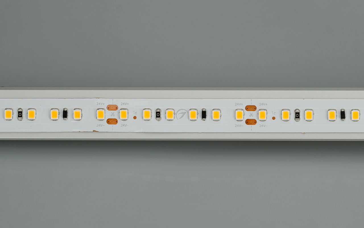 Стабилизированная светодиодная лента IC серии A120 шириной 12 мм, мощностью 9.6 Вт/м, с подключением до 20 м. Стабилизаторы тока обеспечивают равномерное свечение белого цвета (6000K) по всей длине при подключении с одной стороны. Напряжение питания 24 В. Светодиоды SMD 2835 (120 шт/м). Индекс цветопередачи CRI>85. Минимальный отрезок 50 мм (6 светодиодов). Лента совместима с любыми диммерами ШИМ. Применяется для декоративной подсветки потолочных ниш, создания контуров рекламных объектов, длинных непрерывных световых линий.