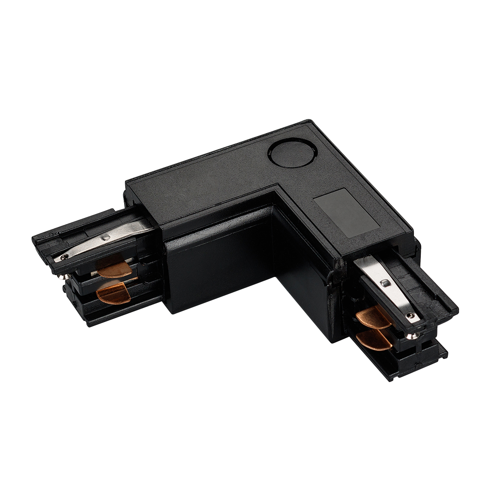Угловой коннектор 90 градусов, питание по внутренней стороне, применяется для соединения двух отрезков шинопровода под углом 90 градусов. Цвет черный. 99х99х33 мм с контактами, 66х66х33 мм без контактов. При использовании с треками и аксессуарами другой серии возможно отличие по цвету.