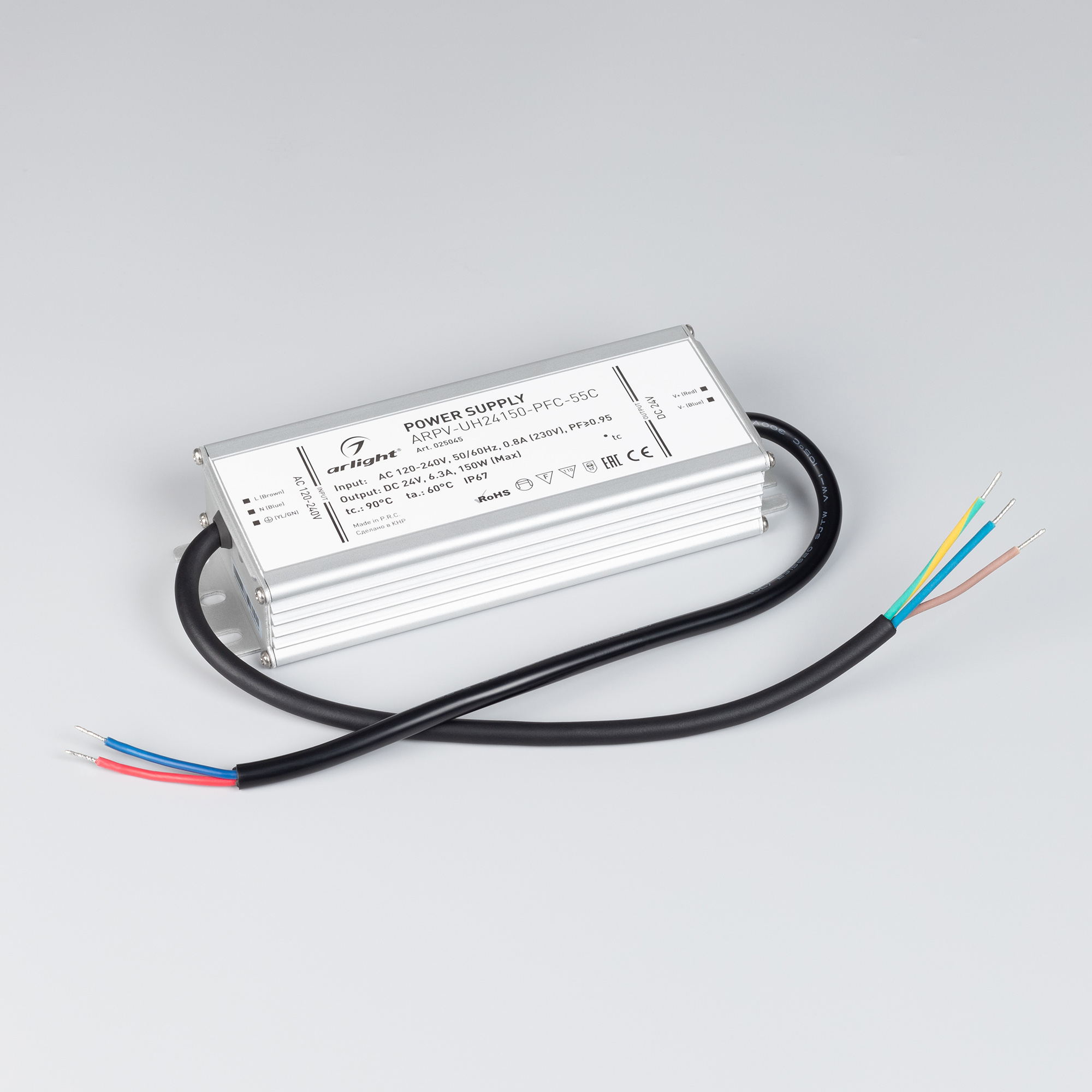Блок питания ARPV-UH24150-PFC-55C (24V, 6.3A, 150W) (Arlight, IP67 Металл, 5 лет)