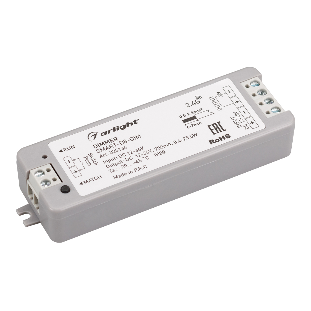 Диммер тока SMART-D8-DIM (12-36V, 1x700mA, 2.4G) (Arlight, IP20 Пластик, 5 лет)
