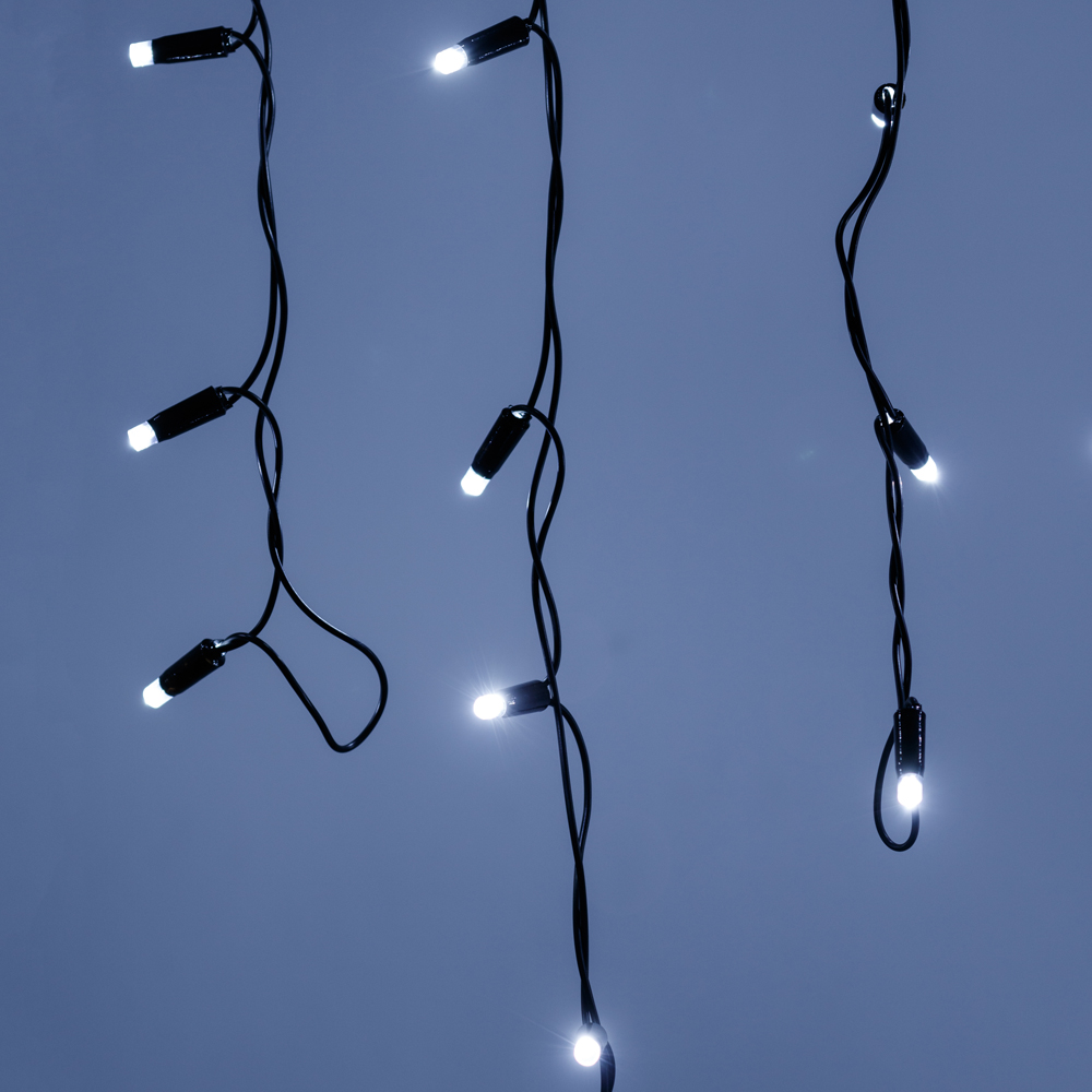 Универсальная светодиодная гирлянда "БАХРОМА" серии Pro отлично подходит для украшения и создания праздничной атмосферы как внутри помещений, так и снаружи (степень пылевлагозащиты IP65 позволяет размещать гирлянду на улице под навесом). Имея размеры 5600 x 900 мм, она может использоваться для оформления средних и больших площадей. Универсальные соединительные разъемы позволяют наращивать длину до 50 м без использования дополнительных аксессуаров. Прозрачная вогнутая линза и эффект непрерывного свечения обеспечивают яркое, равномерное освещение, выделяя украшаемые объекты. Холодный белый свет помогает создать необходимую атмосферу для декоративного объекта. Провод изготовлен из каучука и окрашен в черный цвет. Аксессуары для подключения гирлянды к сети приобретаются отдельно.