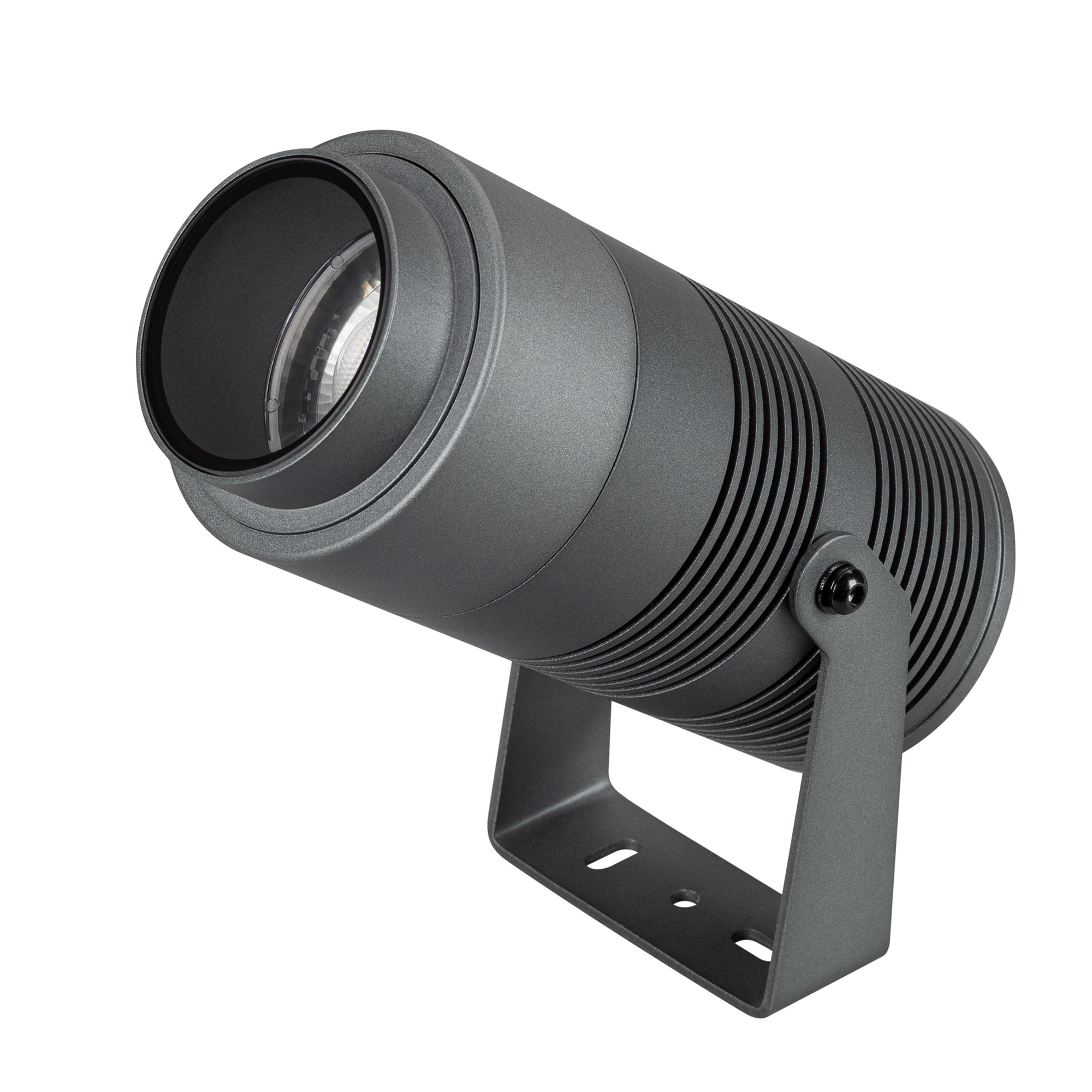 Уличный светодиодный прожектор, мощность 25Вт, регулируемый угол освещения 10-40°. Цвет ТЕПЛЫЙ 3000К, световой поток для угла 10° 750 для угла 40° 1300лм. Влагозащищенный корпус IP67 - темно-серый алюминий, экран из закаленного стекла. Угол поворота корпуса в вертикальной плоскости 135°. Питание 230В, мощность 25 Вт. Размеры DxH - Ø89x212мм. В комплекте 1м провод.