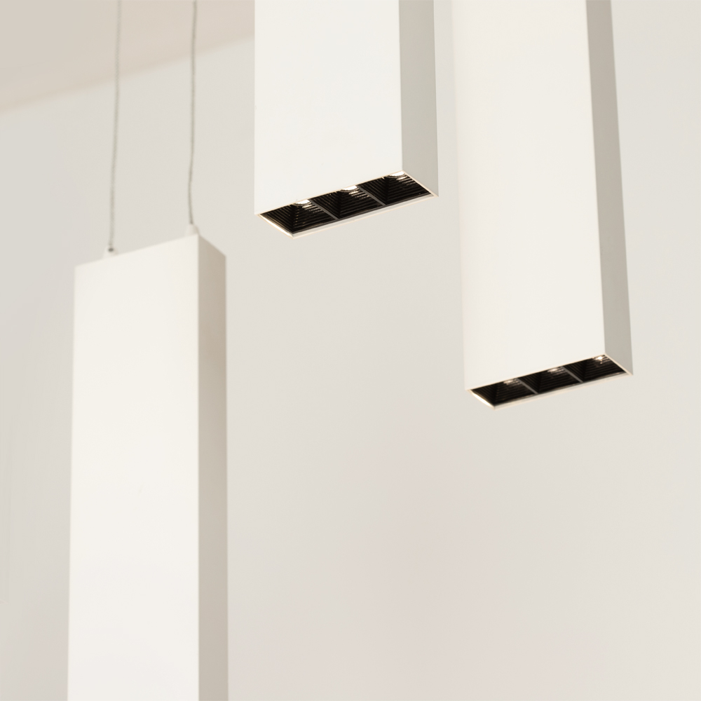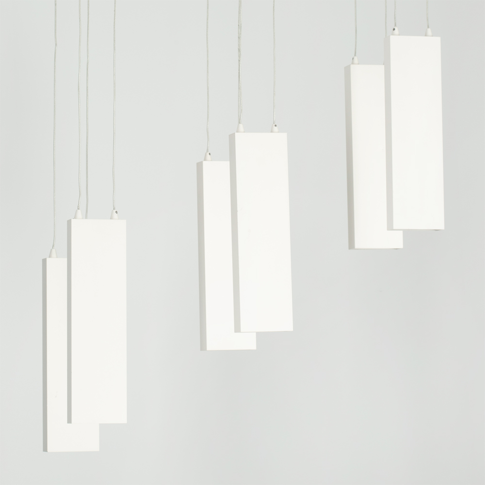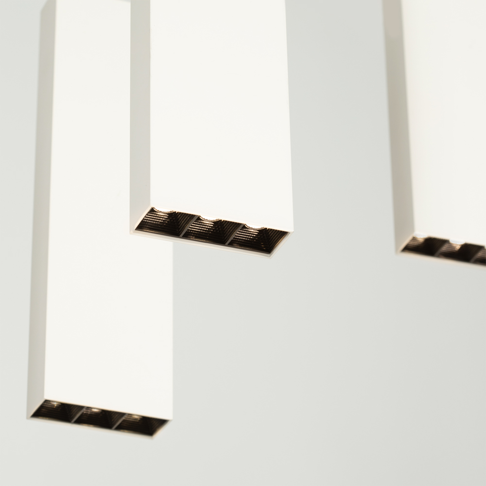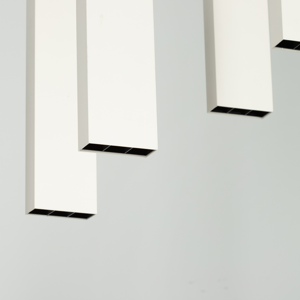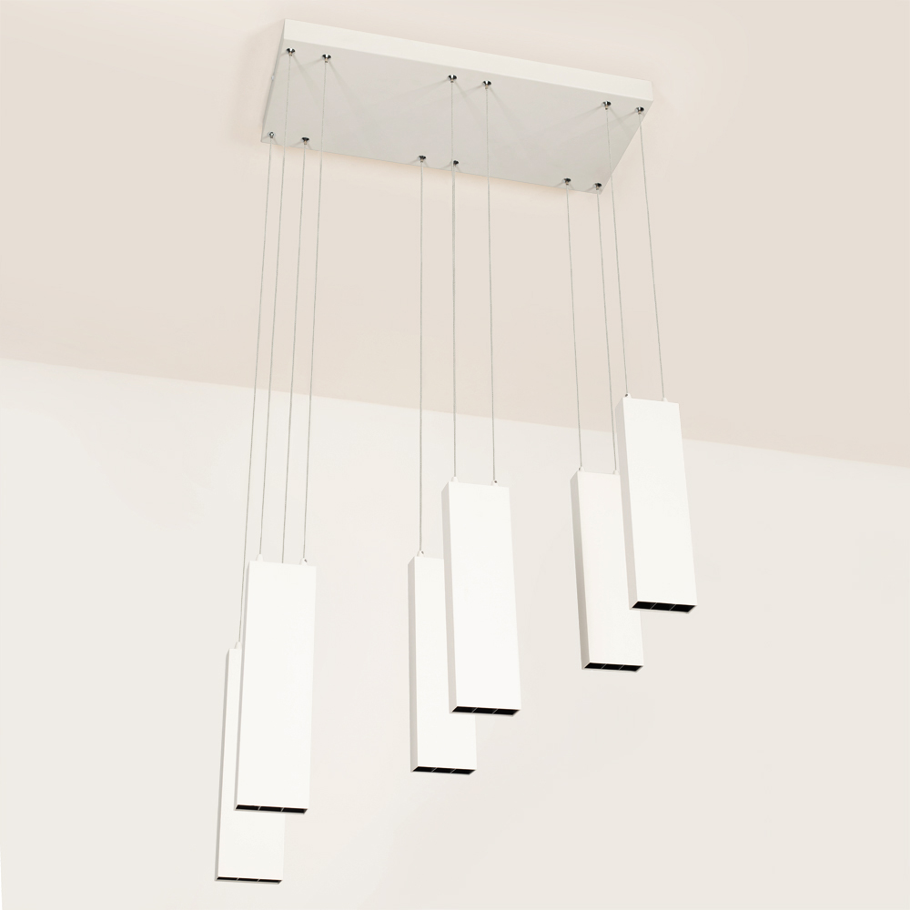 Подвесной светильник 6х6Вт, белый матовый корпус, материал алюминий. Цвет ТЕПЛЫЙ БЕЛЫЙ 3000K, св.поток 2400лм, CRI(Ra)>80, угол 34°. Размер 585x250x1200мм. Питание AC220-240, драйвер в комплекте (40-67V, 600mA), 36Вт.