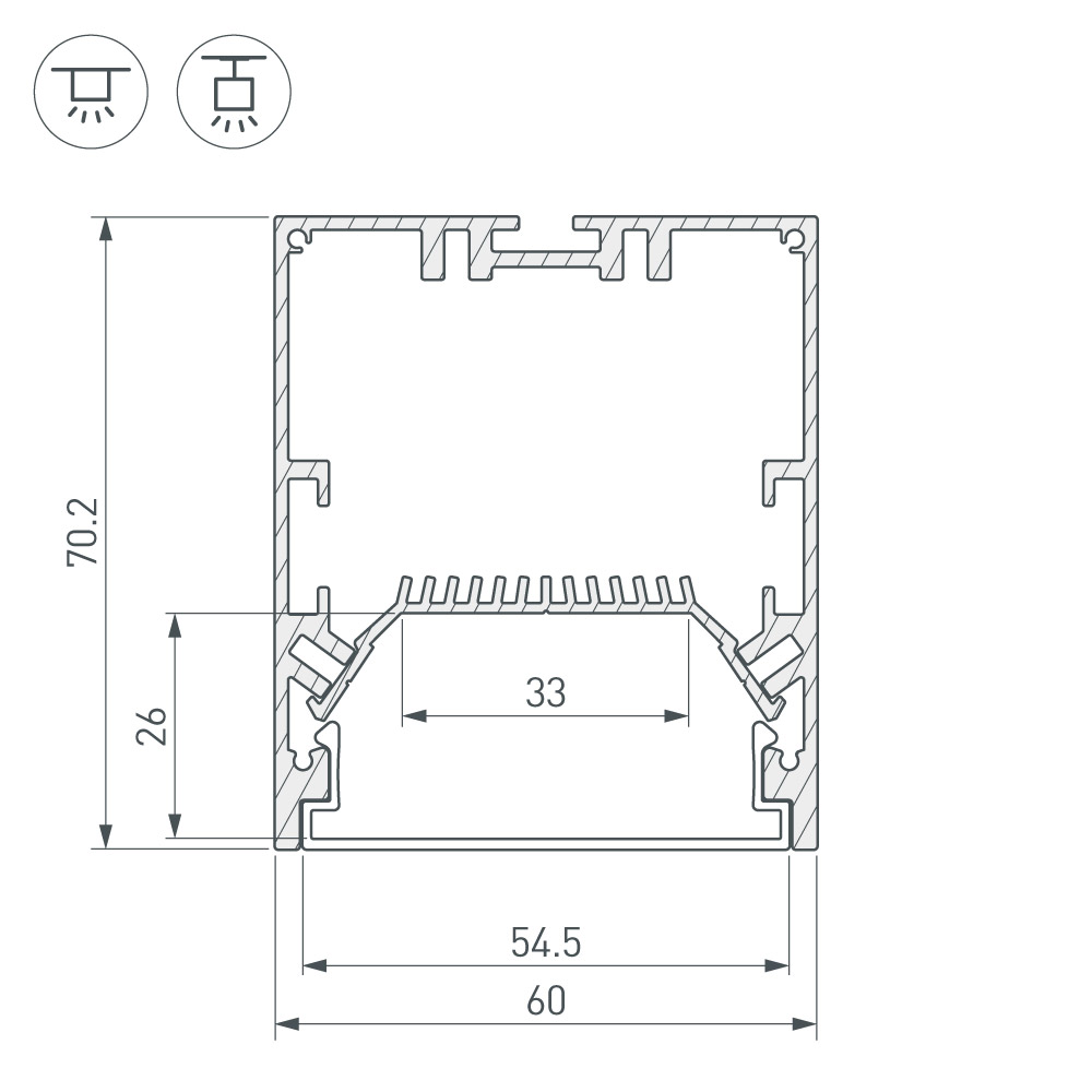 Подвесной/накладной профиль из анодированного алюминия для основной и контурной подсветки помещений. Габаритные размеры профиля составляют 2000 мм в длину, 60 мм в ширину и 70 мм в высоту. Площадка для установки светодиодных лент позволяет использовать ленту шириной до 33 мм и мощностью до 31,6 Вт/м. Это обеспечивает гибкость в выборе светодиодных лент и создает потрясающие световые решения. Экраны, заглушки и другие аксессуары не включены в комплект и приобретаются отдельно. Цена указана за 1 метр профиля. Отличное решение для создания современных световых проектов.