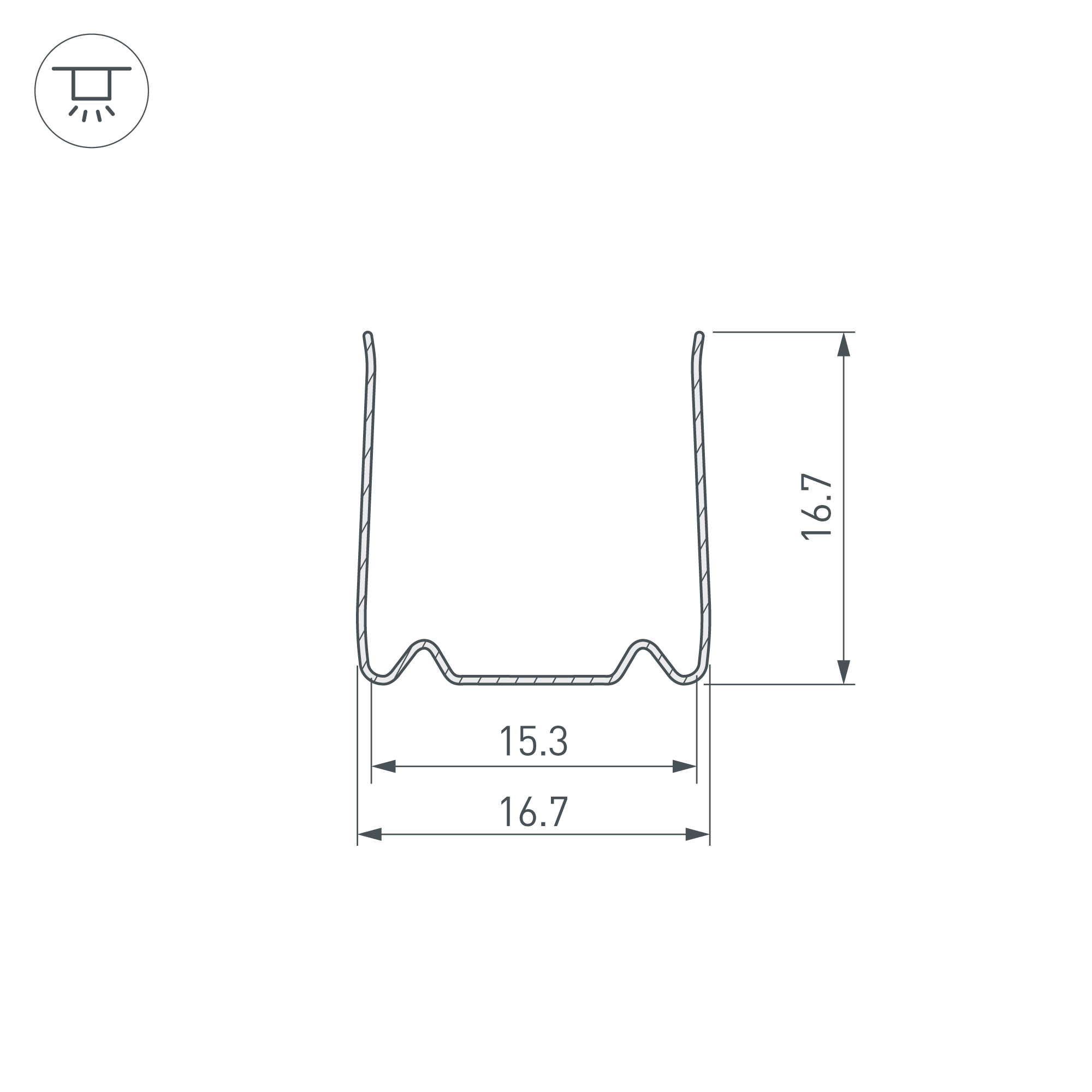 Гибкий стальной профиль предназначен для использования с герметичной лентой 3D MOONLIGHT сечения 15х15 мм. Внешние размеры профиля–16.7x16,7 мм, его длина составляет 500 мм, что обеспечивает удобство и простоту монтажа.