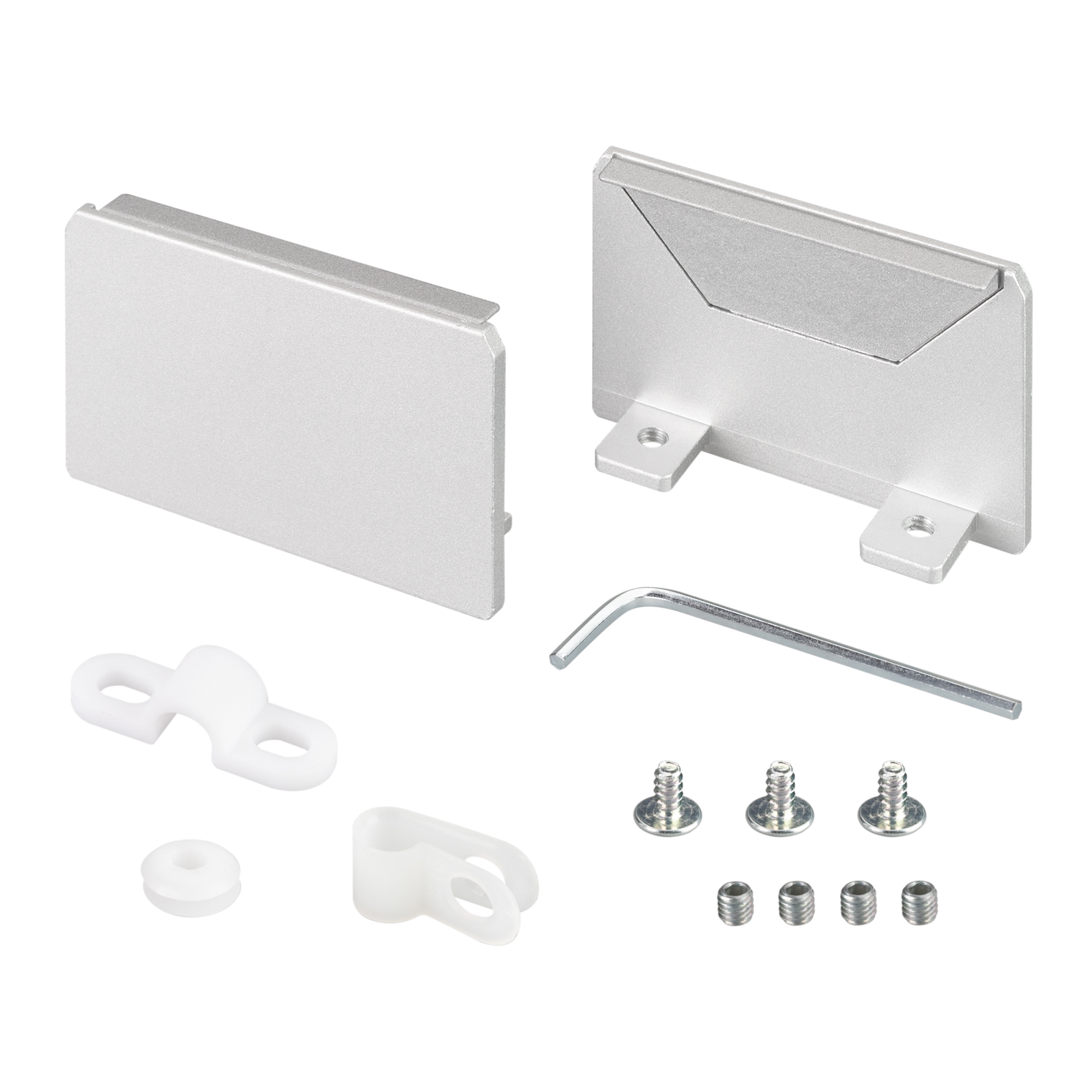Металлические глухие заглушки (2 шт.) для профиля SL-LINIA55-FANTOM SEAMLESS. Материал - алюминий. Придают законченный вид светильнику, а также защищают светодиодную ленту от внешних факторов (грязи, пыли и прочего).