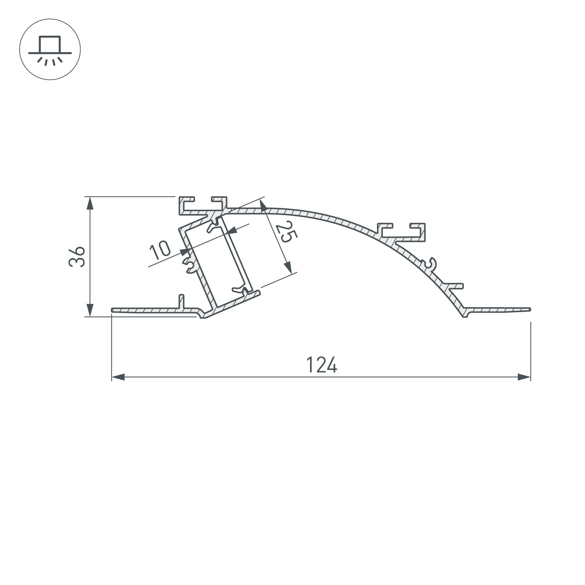 Алюминиевый светотехнический профиль специально предназначен для установки светодиодных лент или линеек. Цвет серебристый. Длина 2000 мм, размер сечения 125х36 мм. Монтаж осуществляется между двумя листами гипсокартона. Высокая рассеиваемая тепловая мощность 72 Вт/м позволяет создать основное освещение в интерьерах. Экраны и заглушки, входящие в комплект, позволяют создать готовый светильник. Профиль охлаждает светодиодную ленту, продлевая срок её службы и сохраняя яркость, а также защищает от воздействия пыли, влаги и других внешних факторов. Высококачественное анодированное покрытие защищает профиль от внешних воздействий и коррозии. Светотехнический профиль - отличное решение для создания современных световых проектов.