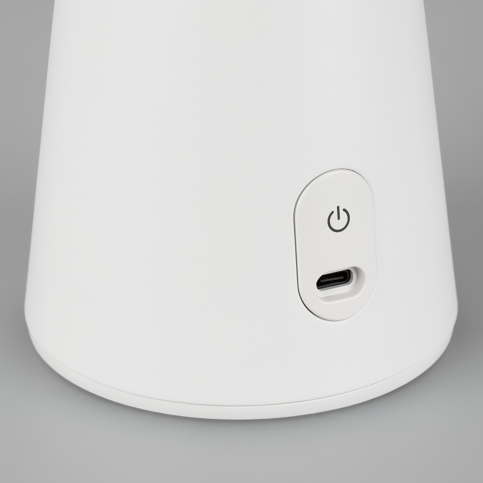 Настольный светодиодный светильник SP-PATIO-TAB-2W Warm3000 (WH, 127 deg) со встроенным аккумулятором 2 Вт. Светильник с теплым белым цветом свечения (3000 К) и световым потоком 260 лм станет отличным решением для локальной подсветки. Благодаря степени защиты IP54 светильник можно использовать как в помещениях, так и под открытым небом. Встроенная Li-ion аккумуляторная батарея емкостью 4400 мАч способна обеспечить до 80 часов автономной работы светильника. Последовательное нажатие сенсорной кнопки позволяет включить/выключить светильник и выставить нужный уровень яркости. Зарядка осуществляется через герметичный USB-порт. Зарядный кабель входит в стандартный комплект поставки.