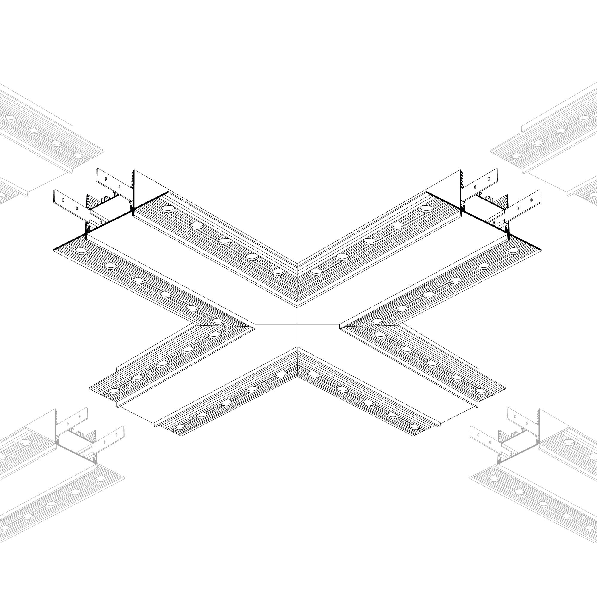 Крестовина в сборе, для профиля SL-LINIA45-FANTOM. В комплекте крестовина с экраном, соединители, винты, шестигранный ключ.