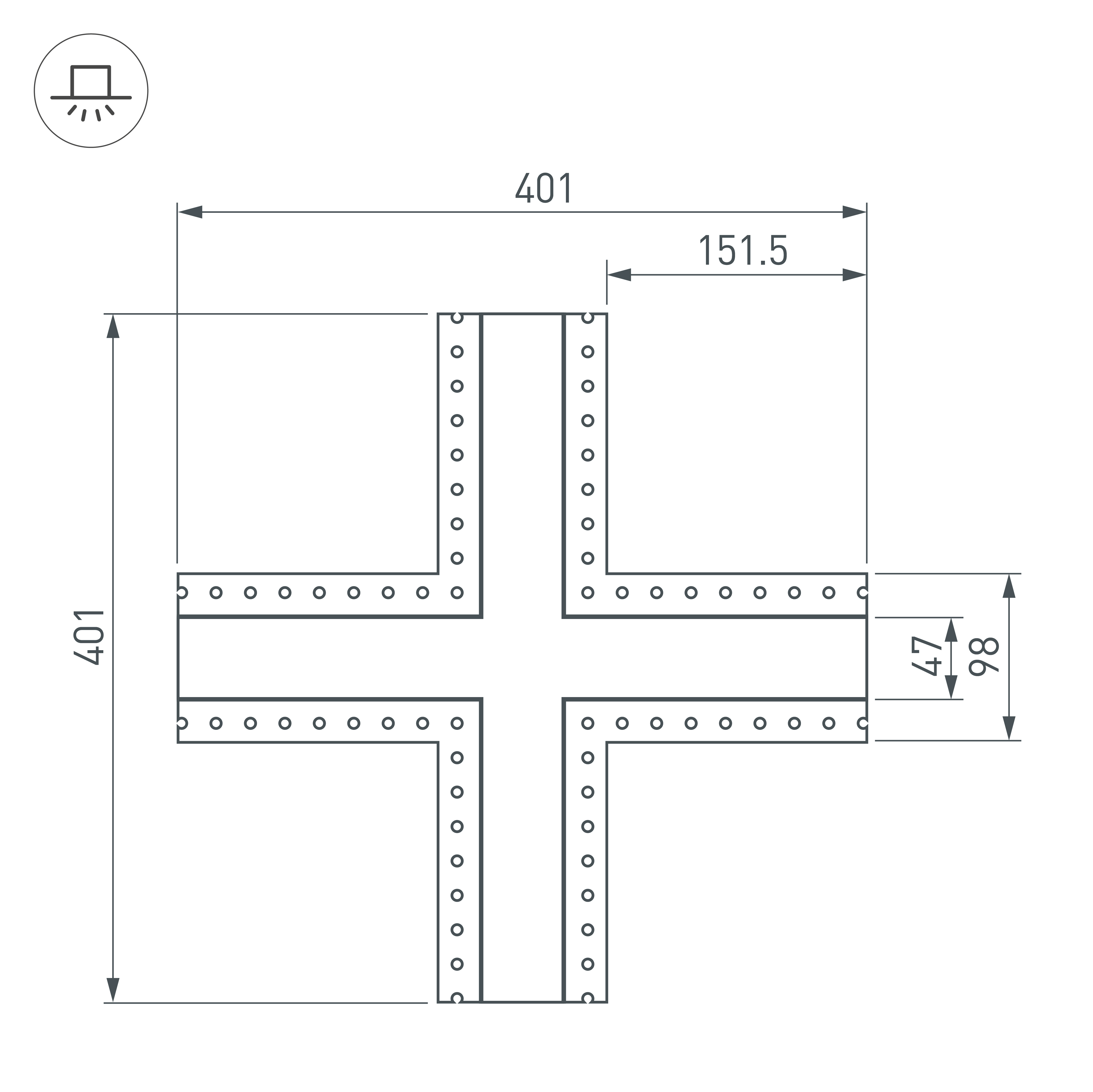 Крестовой угол в сборе для соединения четырех профилей SL-LINIA45-FANTOM под прямыми углами 90° в одной плоскости в комплекте с матовым экраном, соединителями и винтами. Экран образует Х-образную фигуру на плоскости. Применятся при изготовлении светильников сложной геометрии. Длина крестовины 401 мм. Цена за комплект.