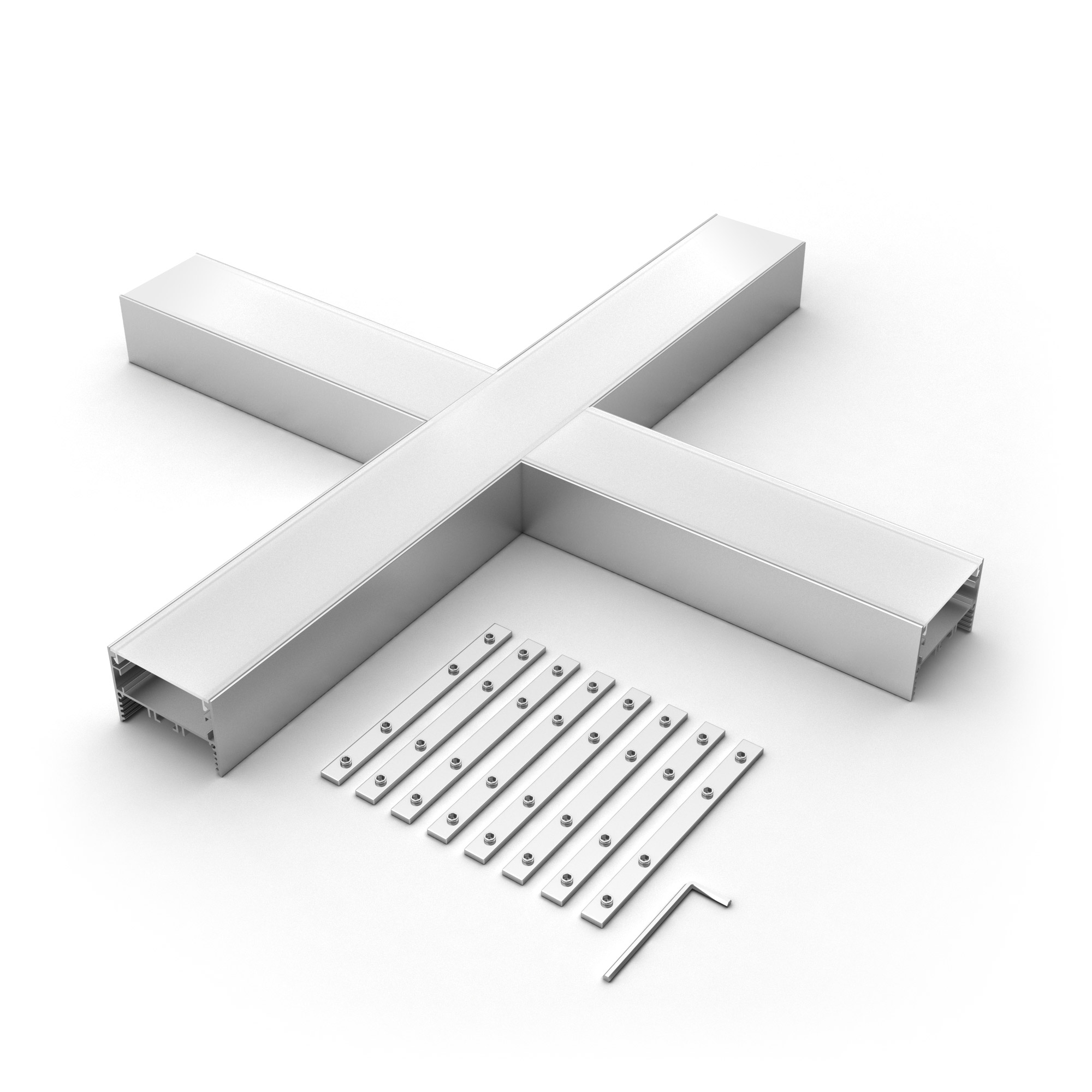 Крестовой угол в сборе для соединения четырех профилей SL-LINE-5035 под прямыми углами 90° в одной плоскости в комплекте с матовым экраном, соединителями и винтами. Экран образует Х-образную фигуру на плоскости. Применятся при изготовлении светильников сложной геометрии. Длина крестовины 400 мм. Цена за комплект.