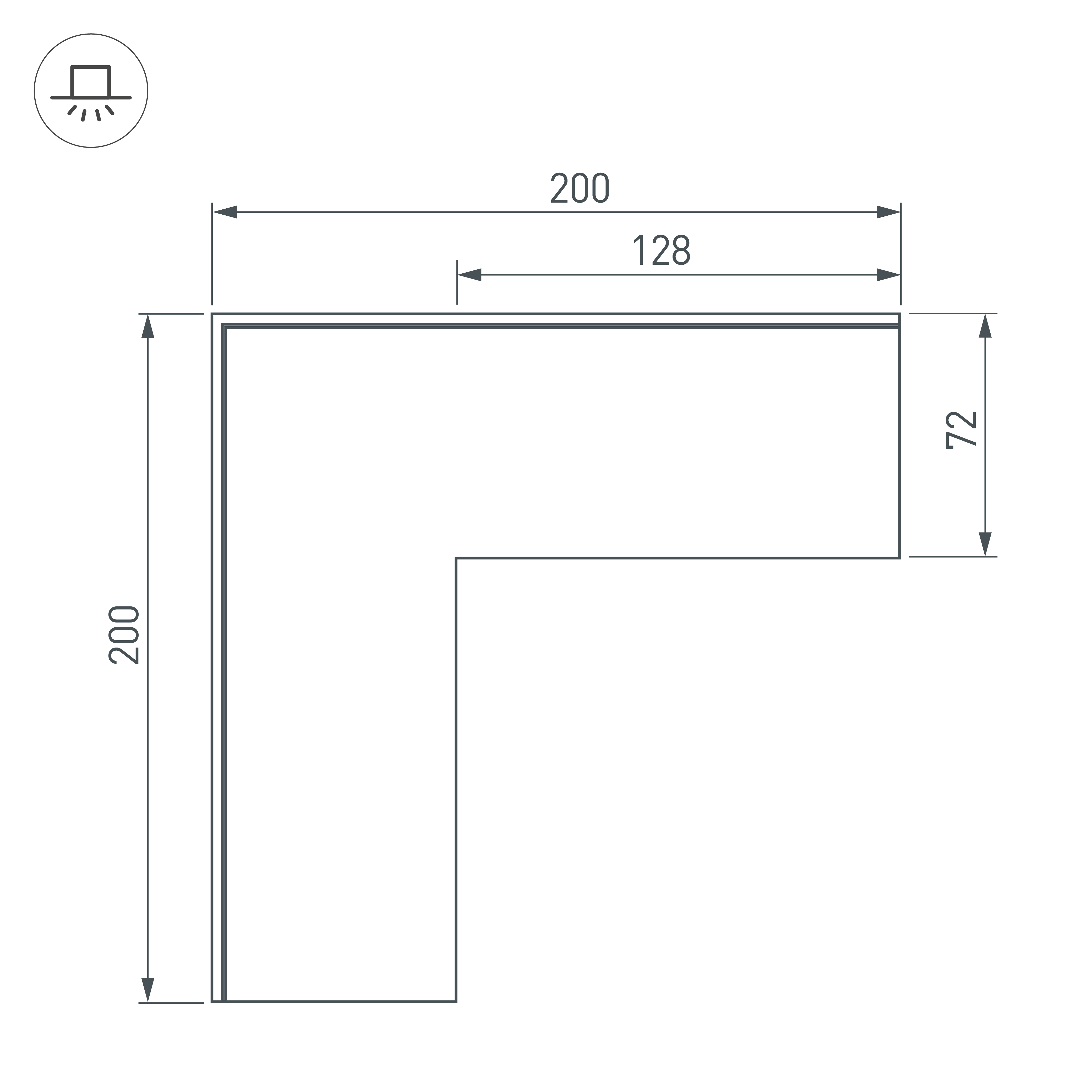 Внешний прямой угол в сборе со скрытым фланцем под строительную отделку для соединения двух профилей SL-LINIA55-FANTOM под прямым углом 90° в разных плоскостях в комплекте с матовым экраном и соединителями. Экран образует линию по внешней стороне угла. Применятся при изготовлении светильников сложной геометрии. Длина внешней стороны угла 200мм. Цена за комплект.