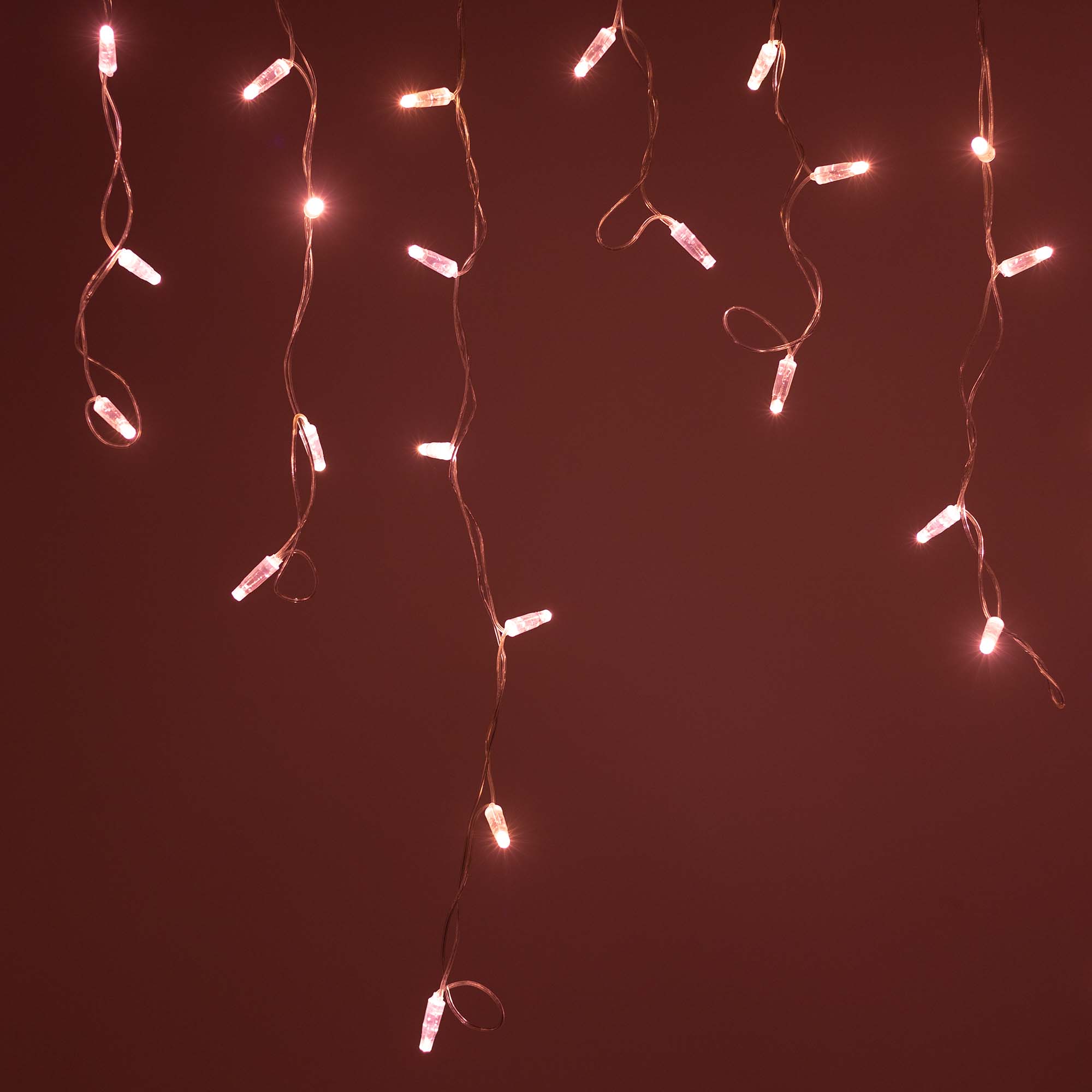 Светодиодная бахрома Classic. Размер 2400x600 мм (длина 2400 мм, по длине 24 нити высотой 200/600 мм). Количество светодиодов 88 шт размером 7 мм. Цвет свечения РОЗОВОЕ ЗОЛОТО, эффект постоянного свечения с резким световым рисунком (прозрачная вогнутая линза). Провод прозрачный, ПВХ. Питание 230 В, Мощность 6 Вт, защита IP65, применение на улице под навесом. Аксессуары для подключения приобретаются отдельно.