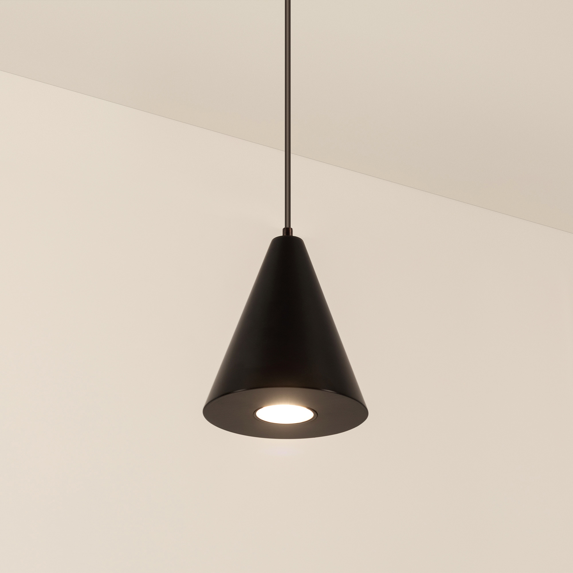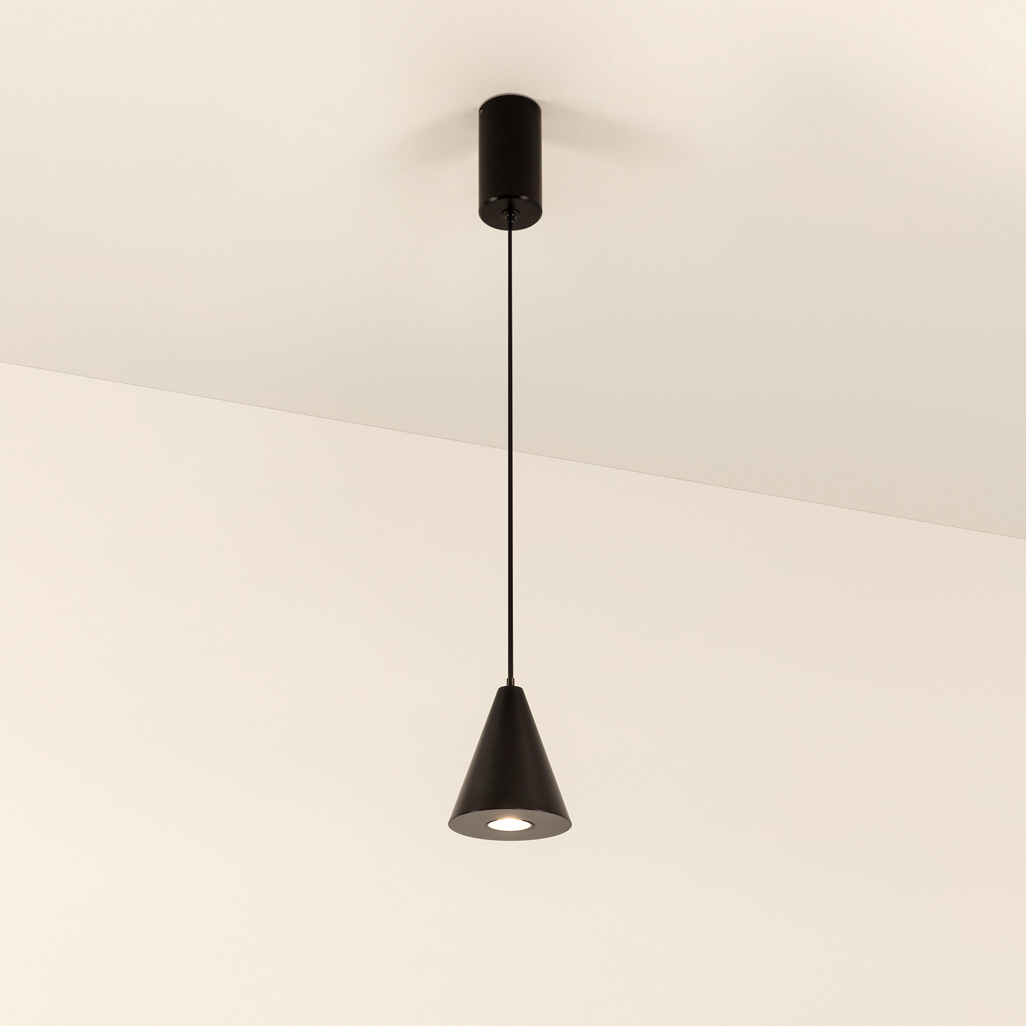 Подвесной светильник SP-ELEMENTA-CONE-R83-9W Warm3000 (BK, 39 deg, 230V) мощностью 9 Вт с теплым белым цветом свечения (3000 К) и индексом цветопередачи CRI>80 предназначен для освещения торговых, офисных, жилых и других помещений. У светильника стильный дизайн и качественное исполнение, поэтому он станет не только источником света, но и стильным декоративным элементом любого интерьера. Световой поток 650 лм и узкий угол излучения 39° помогут при создании световых акцентов. Коэффициент пульсации менее 5% гарантирует комфортное и приятное для глаз освещение без мерцания. Подвесной монтаж и удобная регулировка длины подвеса без специального инструмента. Встроенный драйвер обеспечивает быстрое подключение к сети переменного тока 230 В.