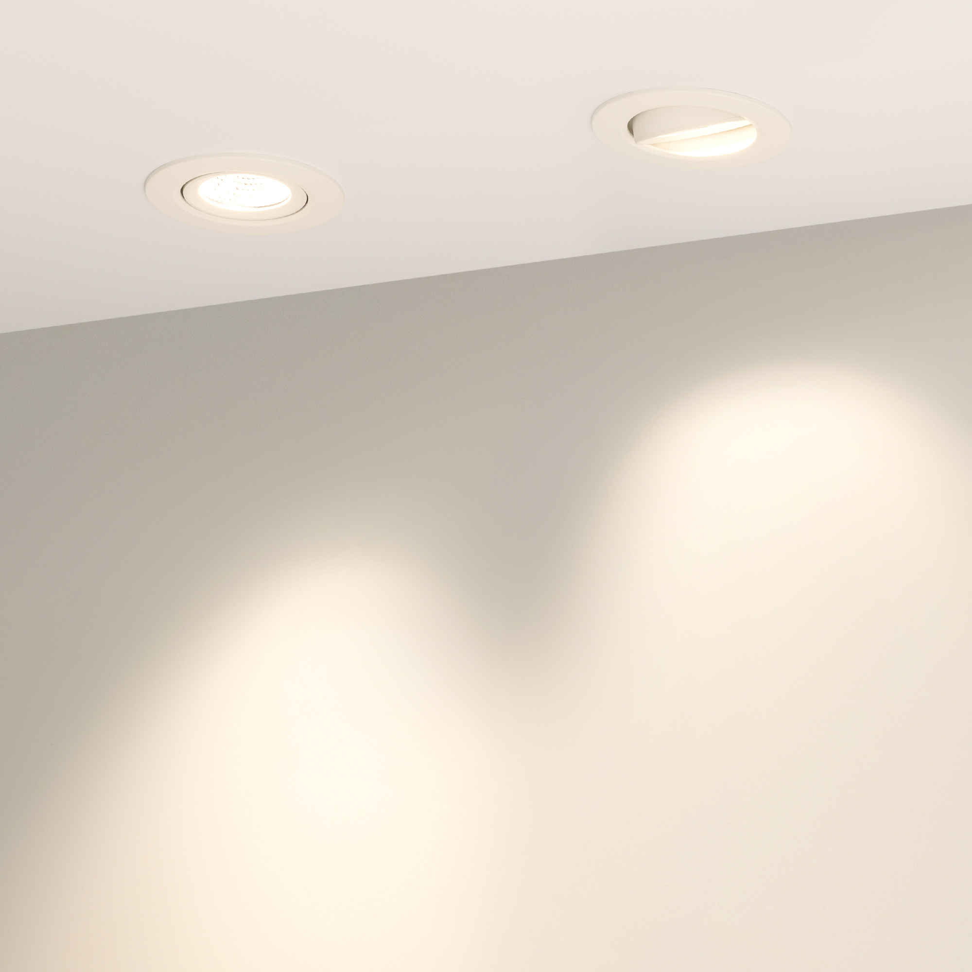 Встраиваемый поворотный светильник LTD-POLAR-TURN-R80-5W Warm3000 (WH, 36 deg, 230V) мощностью 4.5 Вт, с теплым цветом свечения (3000 К) и низким коэффициентом дискомфорта UGR<19, благодаря чему достигается комфортный индекс освещенности. Светильник с цветопередачей CRI>80, световым потоком 400 лм и узким углом излучения 36° предназначен для направленного освещения торговых, офисных, жилых и других помещений. Световой модуль может отклоняться на 30°, позволяя мгновенно менять направление света. Светильник легко устанавливается с помощью пружин в монтажное отверстие Ø 60-70 мм. Благодаря встроенному драйверу светильник безопасно и быстро подключается напрямую к сети переменного тока 230 В.