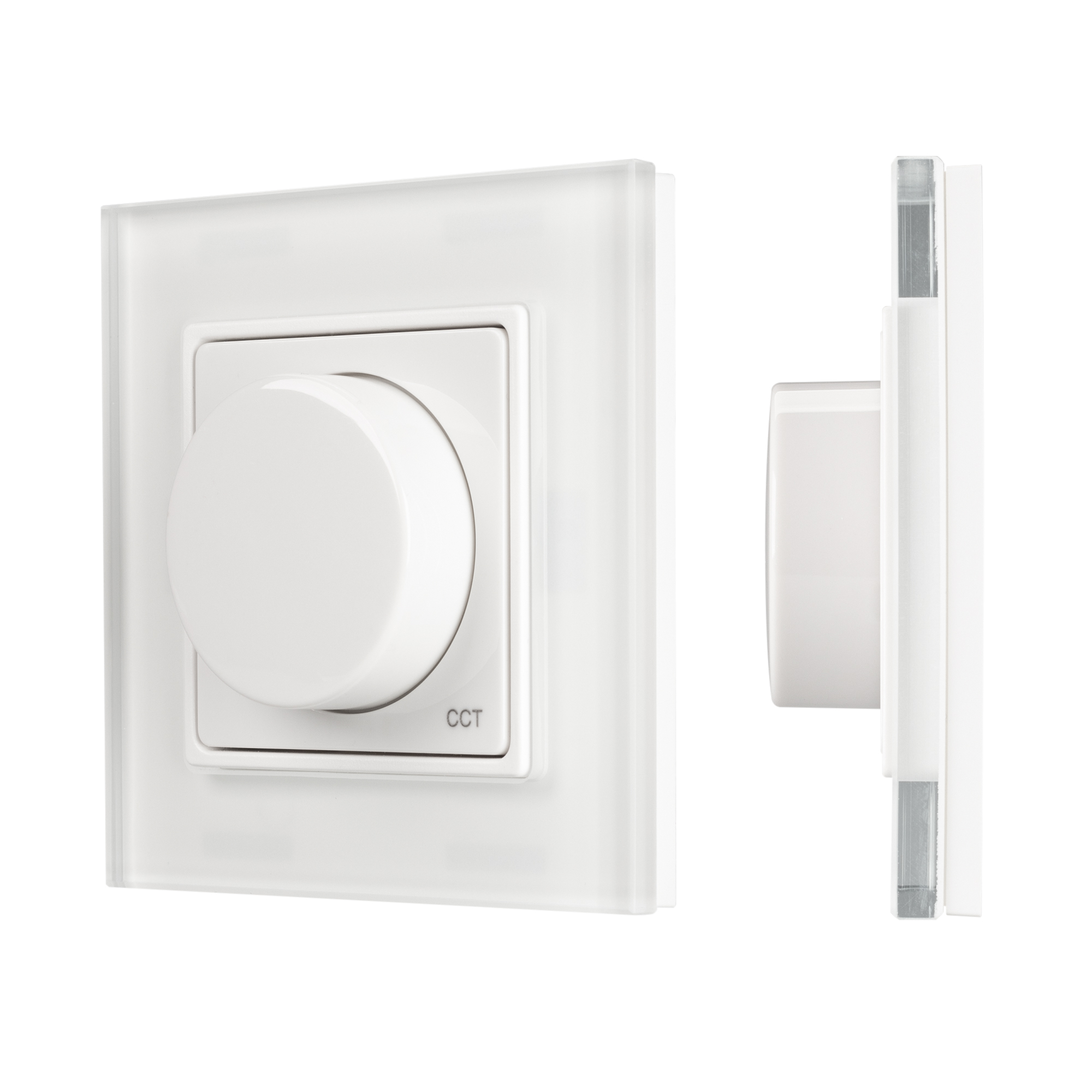 Накладная роторная панель белого цвета, изготовленная из пластика и стекла, защищенного от появления мелких царапин. Предназначена для управления мультибелыми (MIX) источниками света (ШИМ) с помощью роторного вращателя. Основные выполняемые функции: включение и выключение света, регулировка яркости, изменение цветовой температуры. Удобное и точное управление с помощью стильного вращающегося регулятора. Изделие применяется в качестве однозонного пульта дистанционного управления диммерами и контроллерами серии SMART. К одной панели возможно привязать неограниченное количество диммеров и контроллеров. Устройство совместимо с диммерами и контроллерами серии SMART, поддерживающими управление по радиоканалу 2.4G. Питание 3В осуществляется от батарейки CR2025. Габариты панели 86х86х23 мм, корпус выполнен из пластика, лицевая часть - из пластика, рамка - из стекла. Устройство устанавливается на любую поверхность, к которой возможно прикрутить монтажную базу панели.