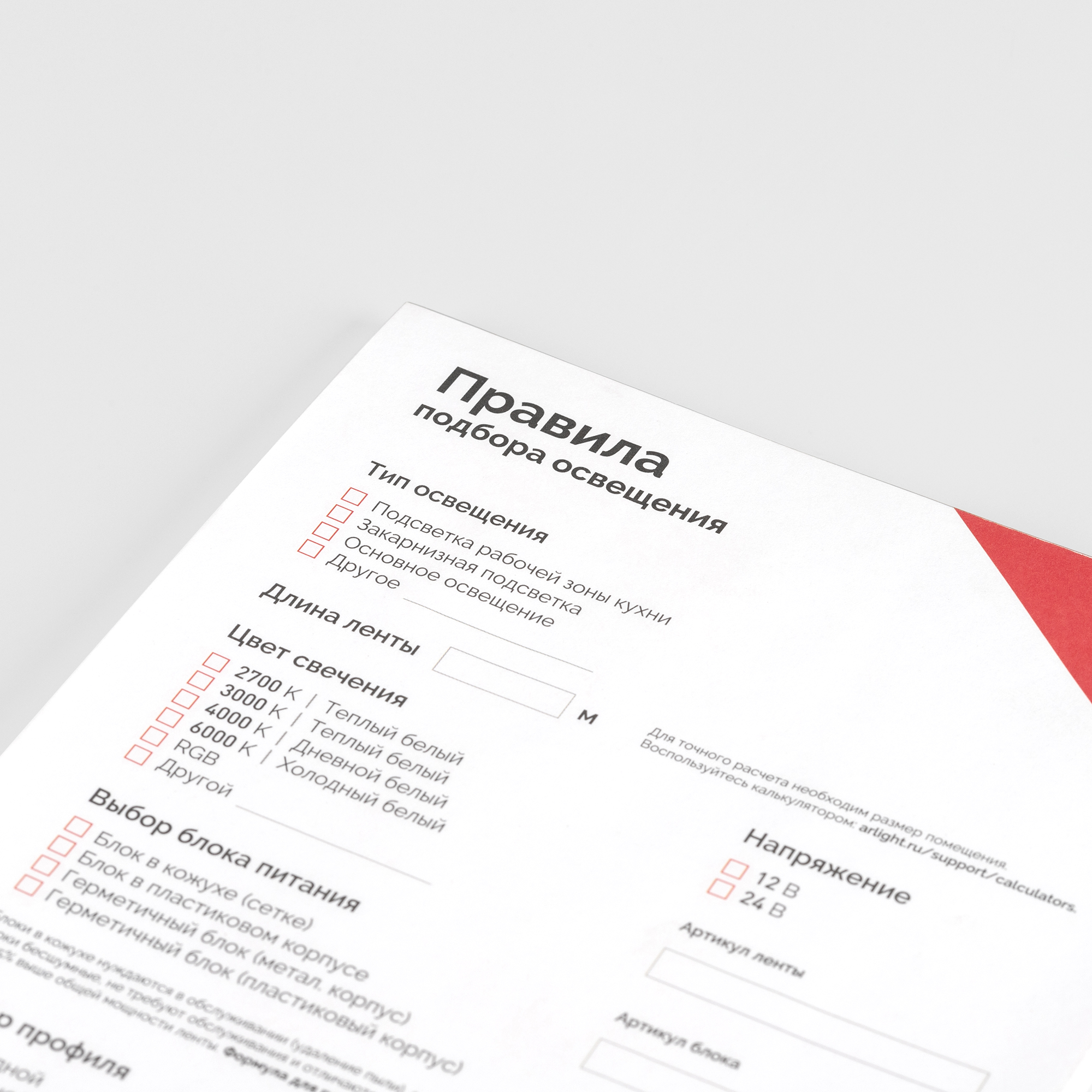 Блокнот- подсказка Правила подбора ленты, блоков питания, профиля и управления (Arlight, -)
