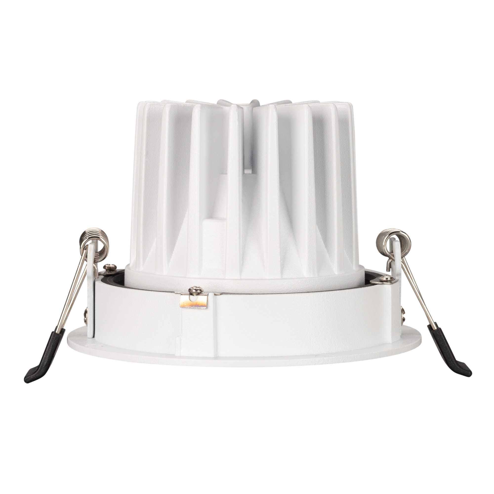 Встраиваемый поворотный светильник FORECAST обладает низким коэффициентом дискомфорта UGR<16, благодаря чему достигается комфортный индекс освещенности. Светильник с цветопередачей CRI>90 обеспечивает достоверную передачу цветов и оттенков. Световой поток 910 лм и узкий угол излучения 32 градуса , защита корпуса на уровне IP20 предназначены для направленного освещения торговых, офисных, жилых и других помещений, в которых отсутствует контакт с водой. Световой модуль может поворачиваться вокруг вертикальной оси на 355 и отклоняться от горизонтали на 30 градусов, позволяя мгновенно менять направление света и расставлять световые акценты. Светильник легко устанавливается с помощью пружин в монтажное отверстие потолка. Драйвер поставляется в комплекте для безопасного и быстрого подключения к сети переменного тока 230 В. Пульсация менее 2% обеспечивает равномерное освещение без мерцания. Диммирование возможно при замене штатного драйвера.