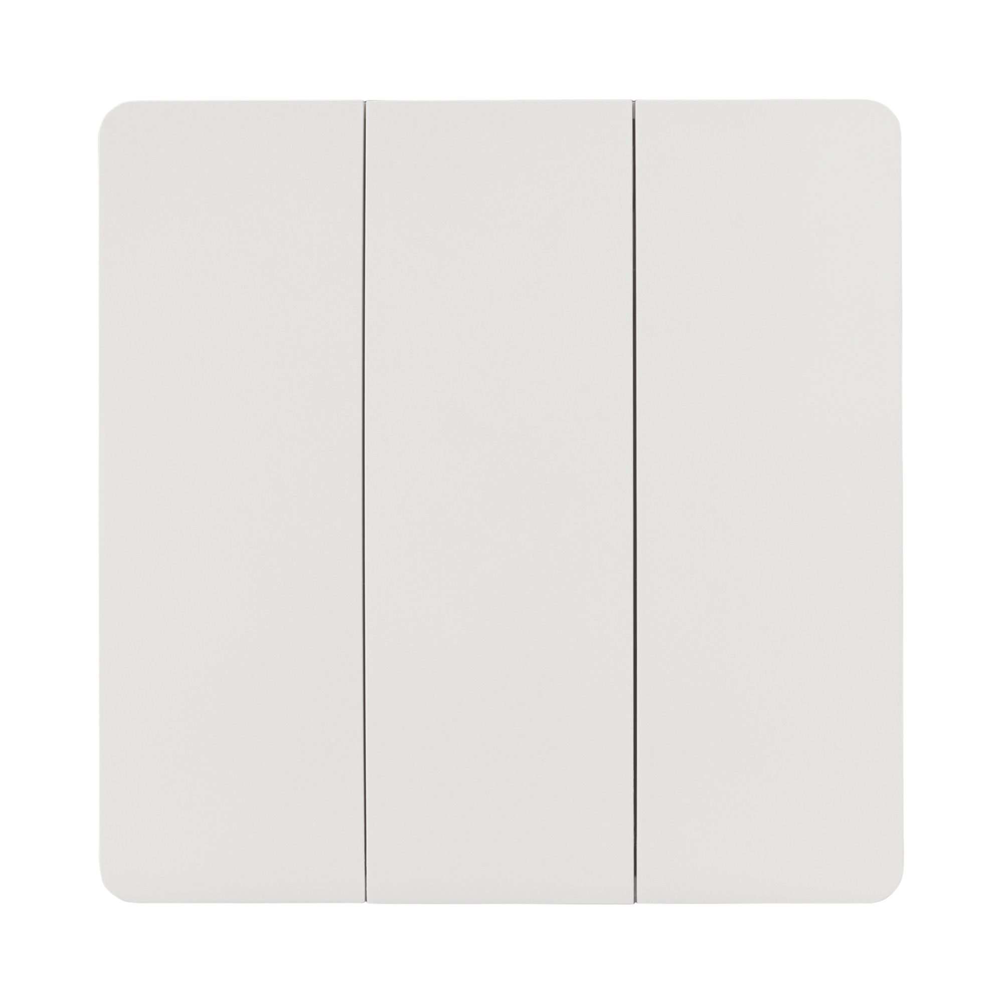 Накладная кнопочная панель белого цвета, изготовленная из пластика. Предназначена для управления одноцветными источниками света (ШИМ) с помощью кнопок. Основные выполняемые функции: включение и выключение света, регулировка яркости. Удобное и точное управление с помощью эргономичных кнопок. Изделие применяется в качестве трёхзонного пульта дистанционного управления диммерами и релейными модули серий TUYA-***-WF и TY-***-WF, поддерживающими управление по радиоканалу 433MHz. Не требует питания, имеет встроенный кинетический источник питания. Габариты панели 86х86х14 мм, корпус выполнен из пластика. Устройство устанавливается на любую поверхность, к которой возможно прикрутить монтажную базу панели.