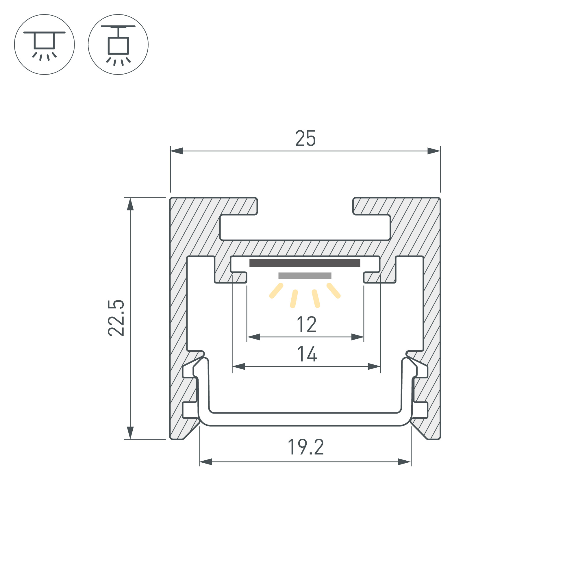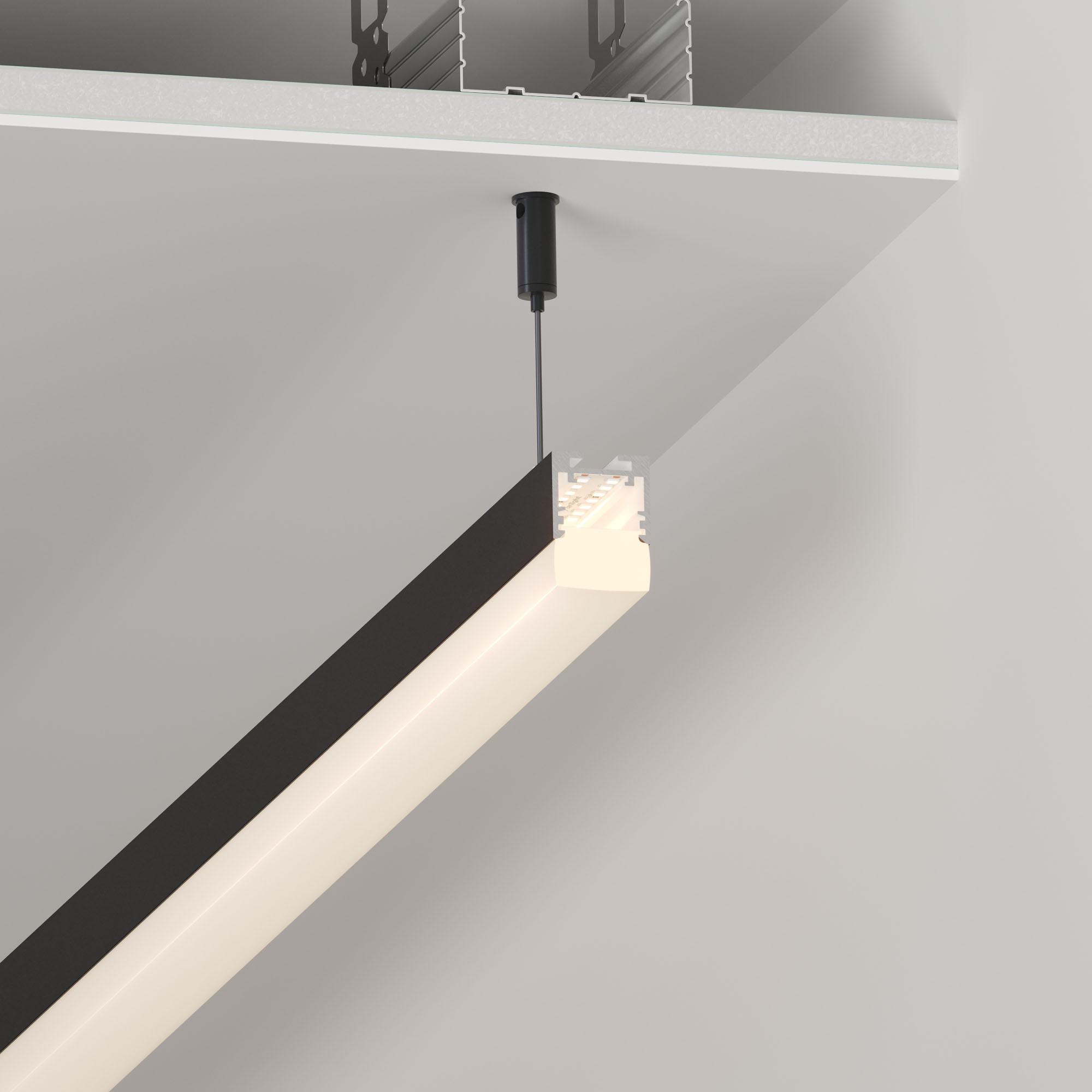 Подвесной/накладной профиль черного цвета из алюминия для основного освещения и контурной подсветки. Габаритные размеры профиля составляют 2500 мм в длину, 25,4 мм в ширину и 22,7 мм в высоту. Площадки для установки светодиодных лент позволяют использовать ленты шириной до 12 мм и мощностью до 25 Вт/м. Это обеспечивает гибкость в выборе светодиодных лент и создает потрясающие световые решения. Экраны, заглушки и другие аксессуары не включены в комплект и приобретаются отдельно. Цена указана за 1 метр профиля. Отличное решение для создания современных световых проектов.