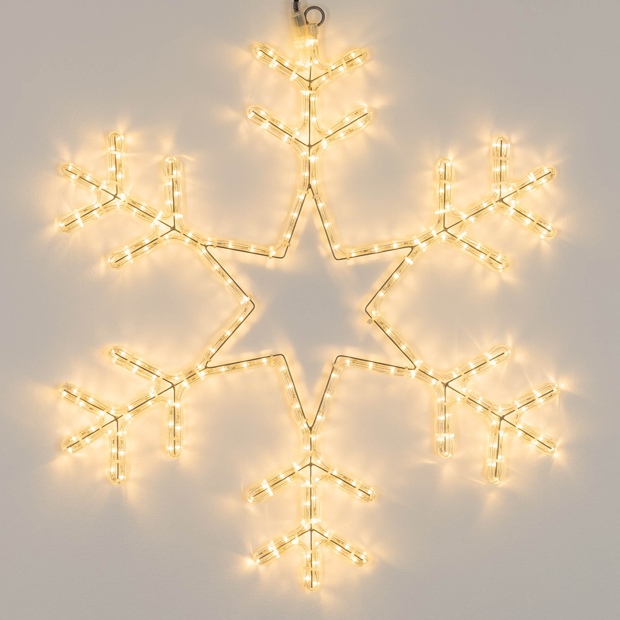 Светодиодная фигура СНЕЖИНКА отлично подходит для украшения и создания праздничной атмосферы как внутри помещений, так и снаружи (степень пылевлагозащиты IP65 позволяет размещать гирлянду на улице под навесом). Размер фигуры 750x750 мм. Тёплый белый свет и постоянное свечение помогают создать сказочную атмосферу в выбранной локации. Фигура укомплектована проводом питания для подключения к сети 230 В (без вилки питания).