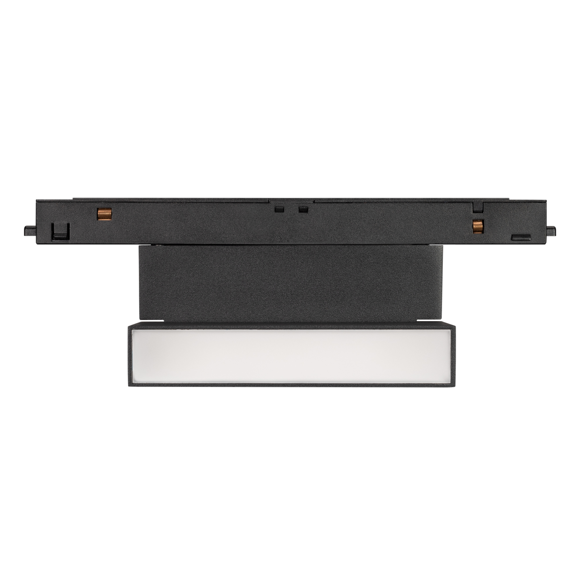 Светильник для магнитных треков MAG-ORIENT шириной 26 мм с управлением DALI. Мощность 6 Вт, св. поток 370 лм, 60 лм/Вт, теплый 3000 K, CRI>90, угол 80°, напряжение питания 48 В. Черный прямоугольный корпус из металл, экран поликарбонат, степень защиты IP20. Размер: длина 195 мм, ширина 23 мм, высота 107 мм. Монтаж на трек MAG-ORIENT, пульсация <1%.
