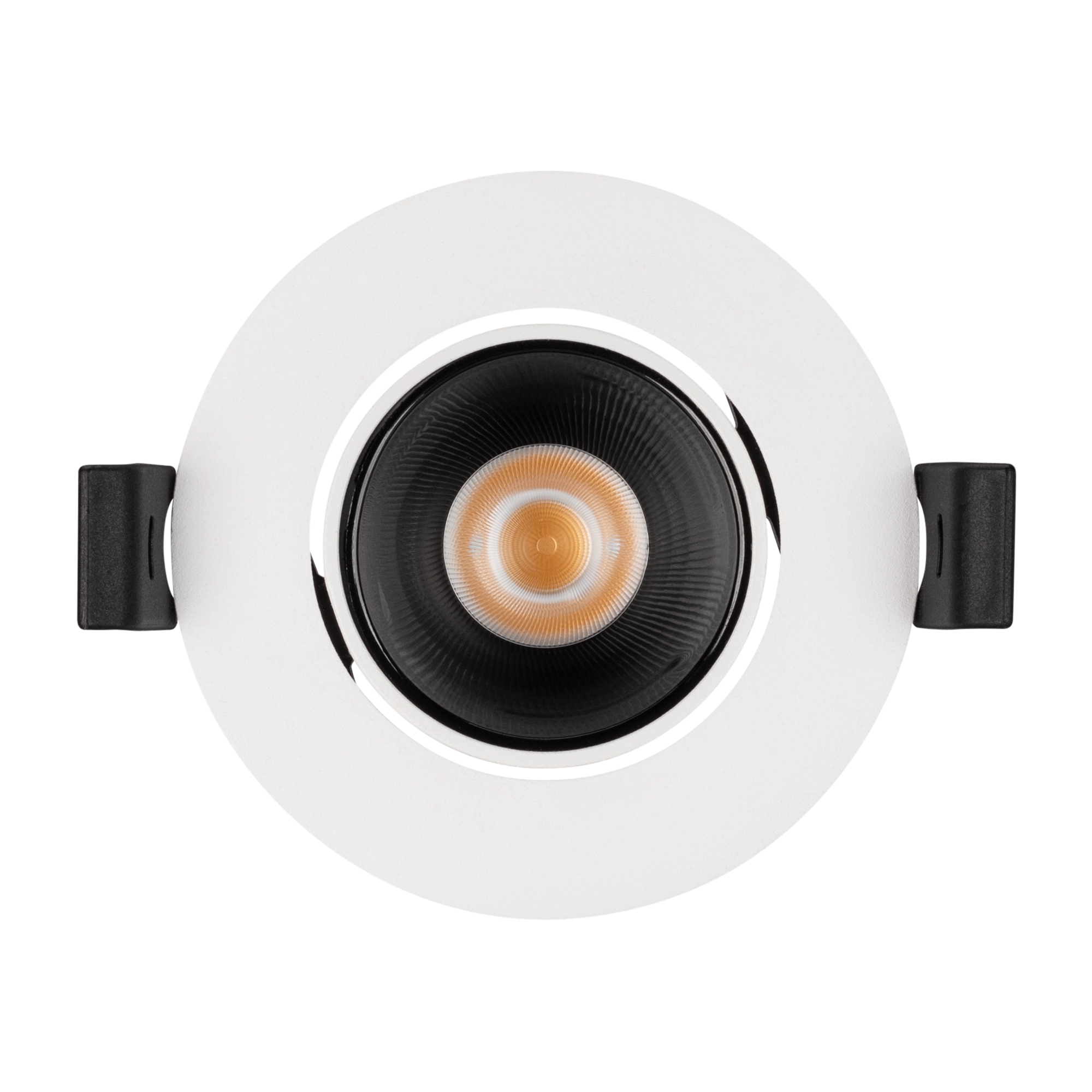 Встраиваемый поворотный светильник даунлайт. Мощность 8.4 Вт, св. поток 700 лм, 83 лм/Вт, теплый 3000 K, CRI>90, UGR<16, угол 32°, напряжение питания 230 В. Белый круглый корпус из алюминия, черный ГЛЯНЦЕВЫЙ отражатель из PMMA, степень защиты IP20. Размер: диаметр 82 мм, высота 51 мм. Монтаж встраиваемый, установочное отверстие: диаметр 75 мм. Драйвер 21-42 В, 200 мА, пульсация <2%.